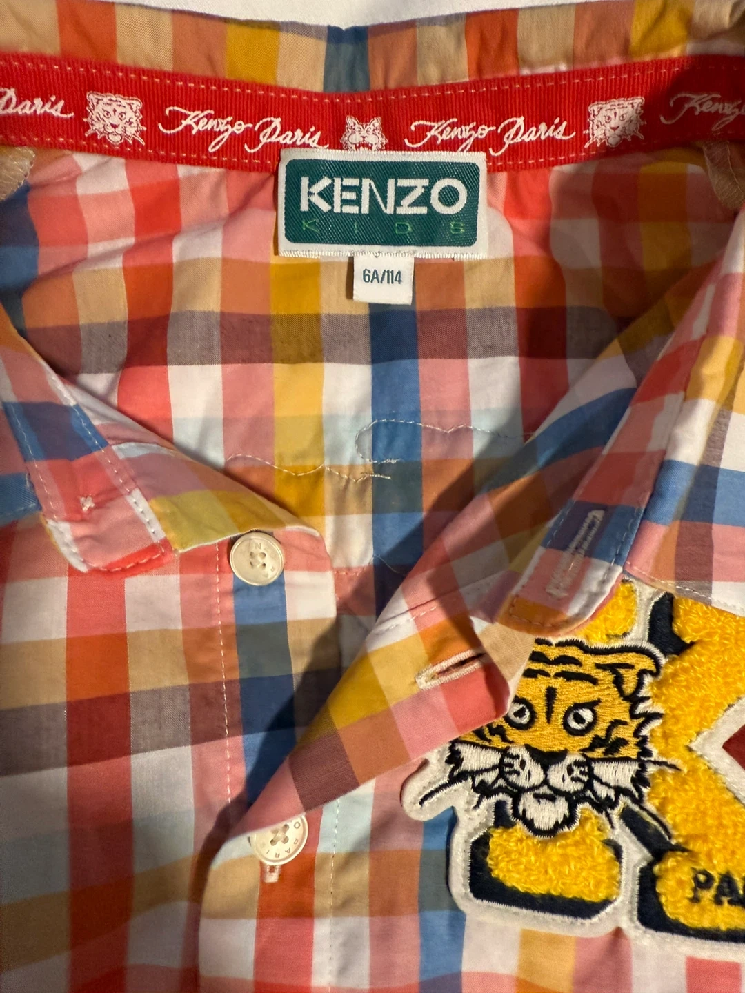 This adorable Kenzo Kids dress is in great condition! It features a colourful plaid pattern with the Kenzo logo. The size is 6A/114 and it's made of 100% cotton. Perfect for your little one!