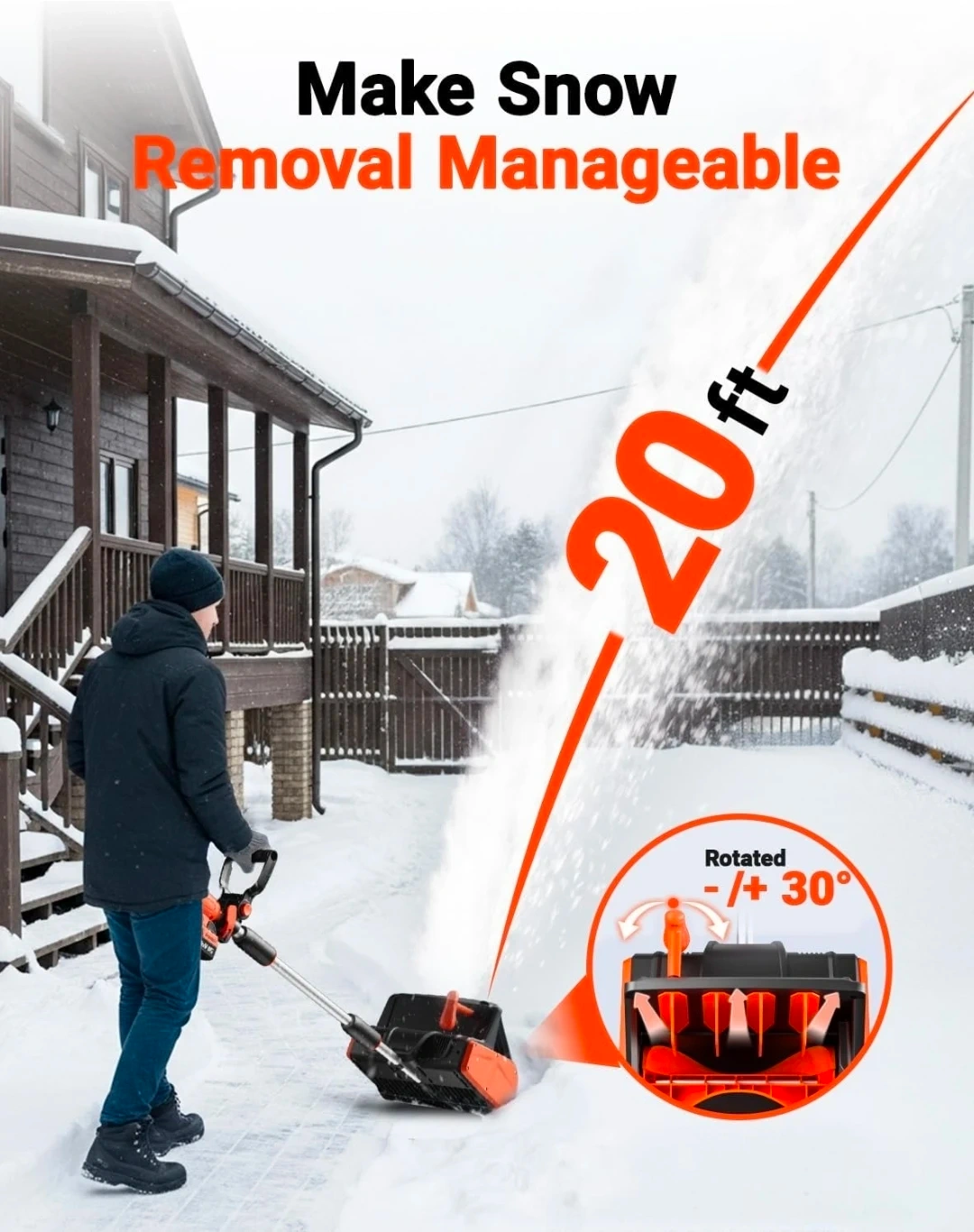 VOLTASK Cordless Snow Shovel, 24V | 13-Inch | 4-Ah Cordless