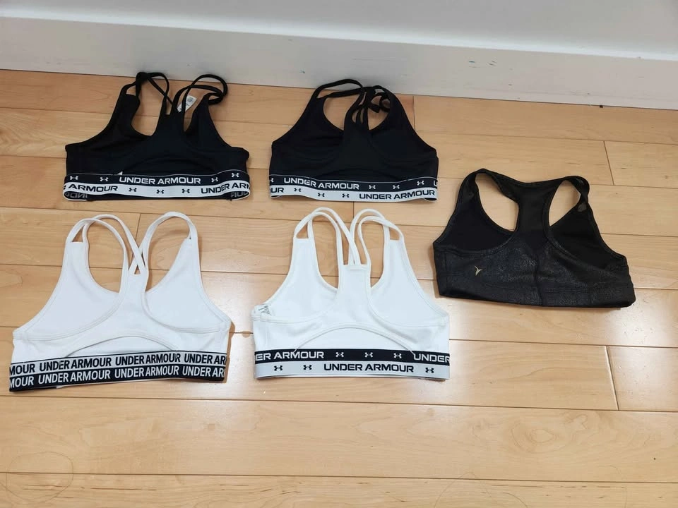 Under Armour Girls Heatgear Armour Sports Bra. Black x 2 & White x 2. All are size YSM.