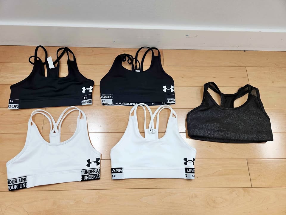Under Armour Girls Heatgear Armour Sports Bra. Black x 2 & White x 2. All are size YSM.
