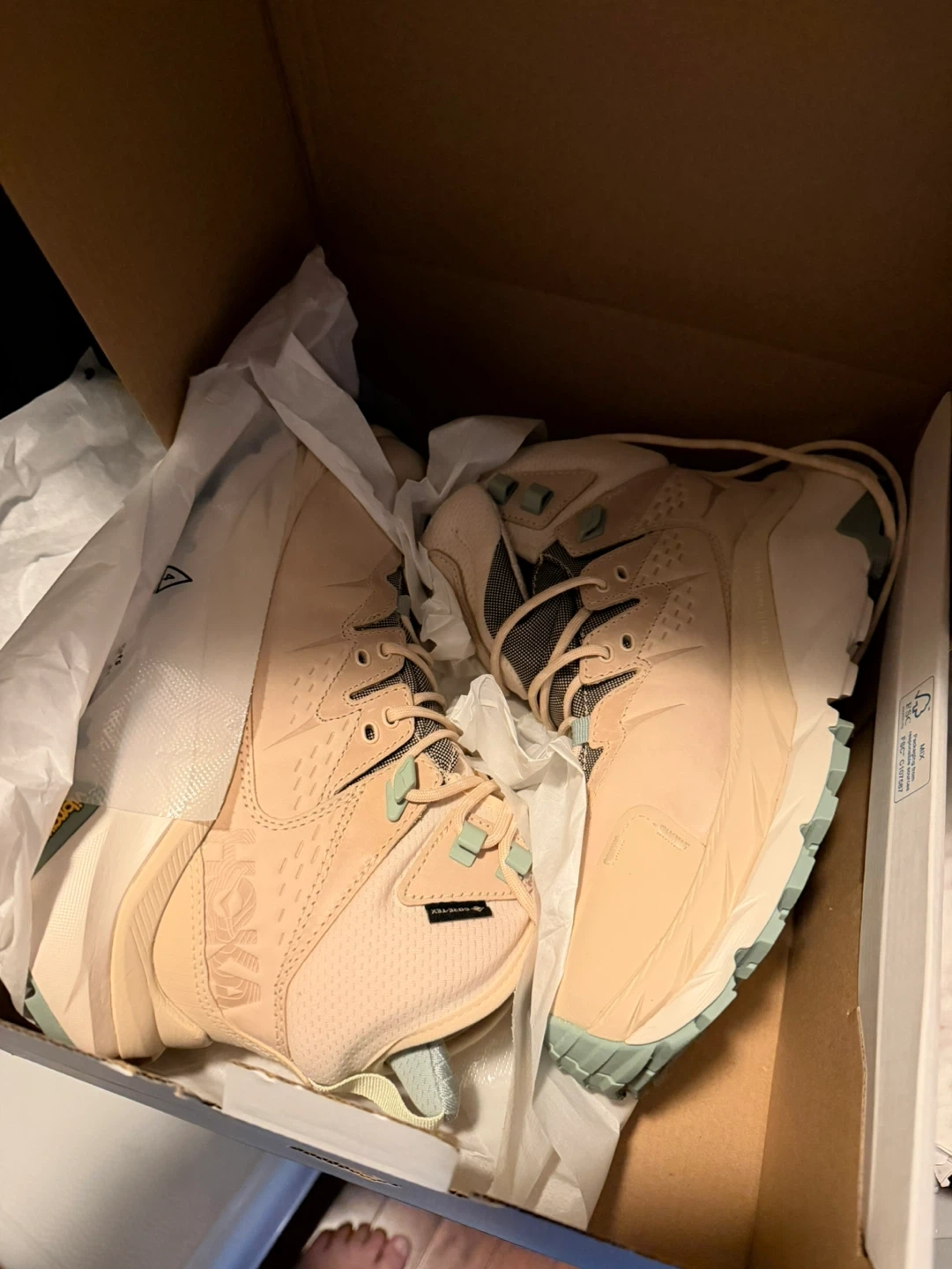 Selling a pair of Hoka Kaha 2 GTX hiking boots in size 7.5B. These are brand new, unworn and come in the original box! Note that these are goretex so completely waterproof. Bought recently but just past the return window.