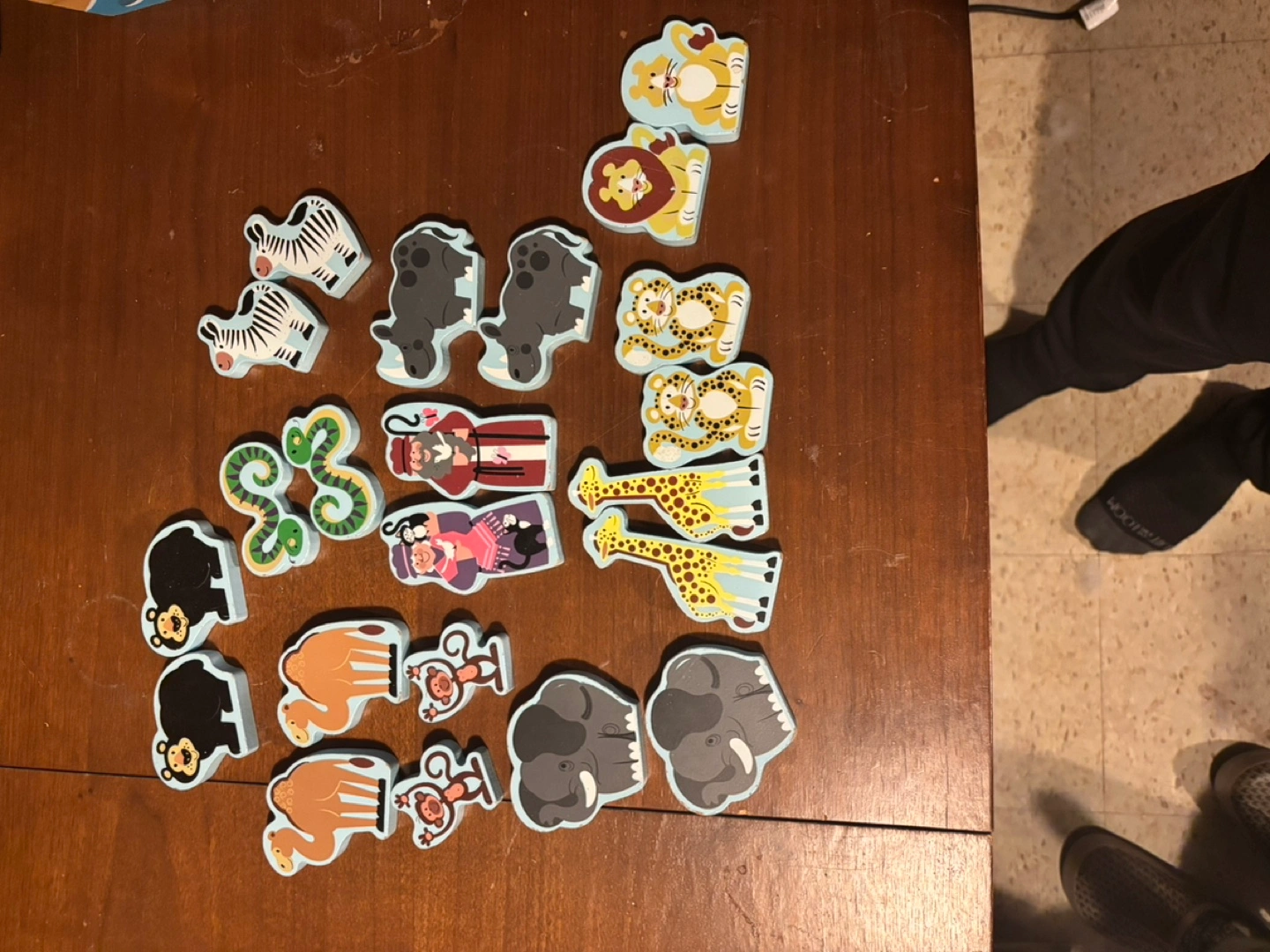 Vintage wooden Noah's Ark toy. Features a two-level shape sorter design. Includes numerous animal pieces to place in the ark. Great for imaginative play and developing fine motor skills.