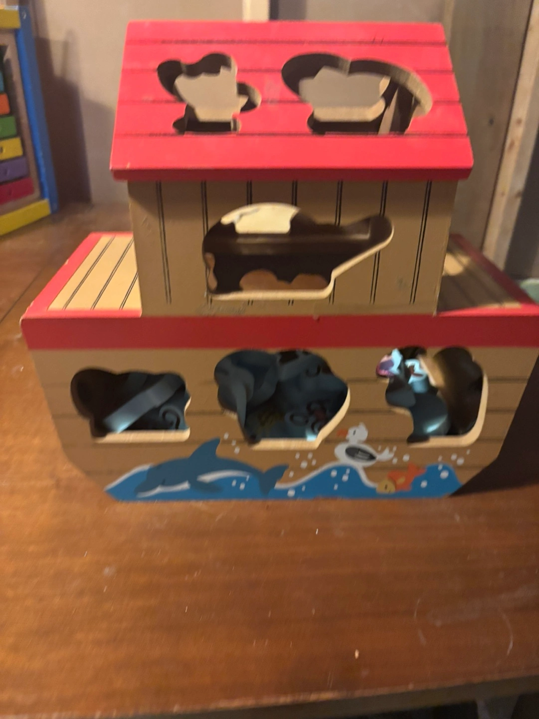 Wooden Noah's Ark Shape Sorter Toy with Animal Pieces
