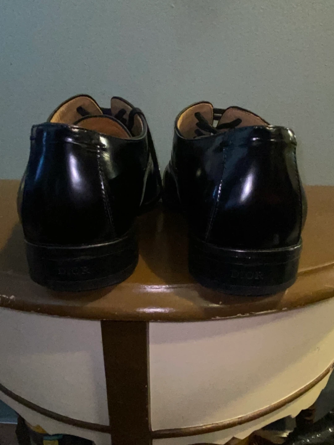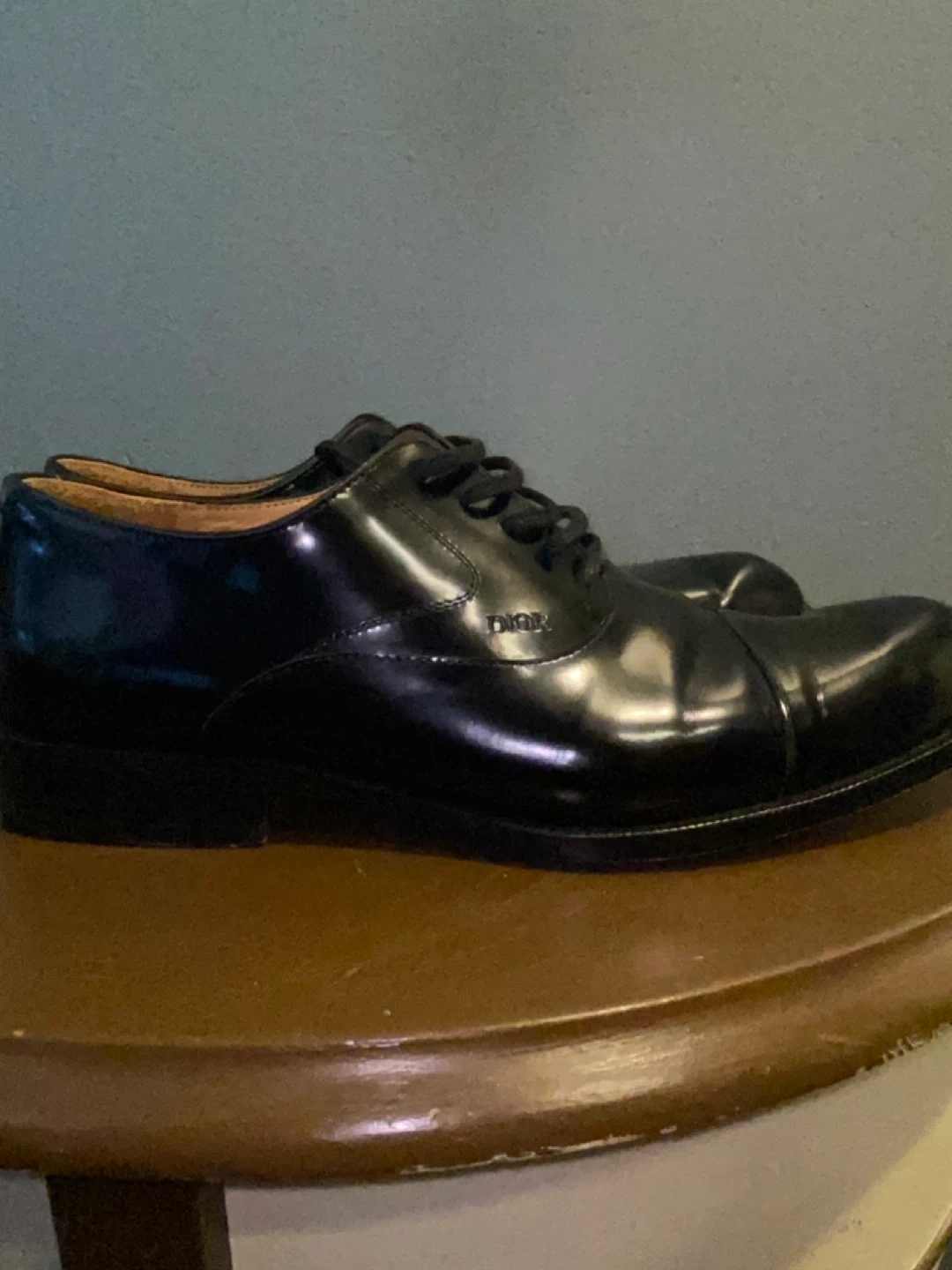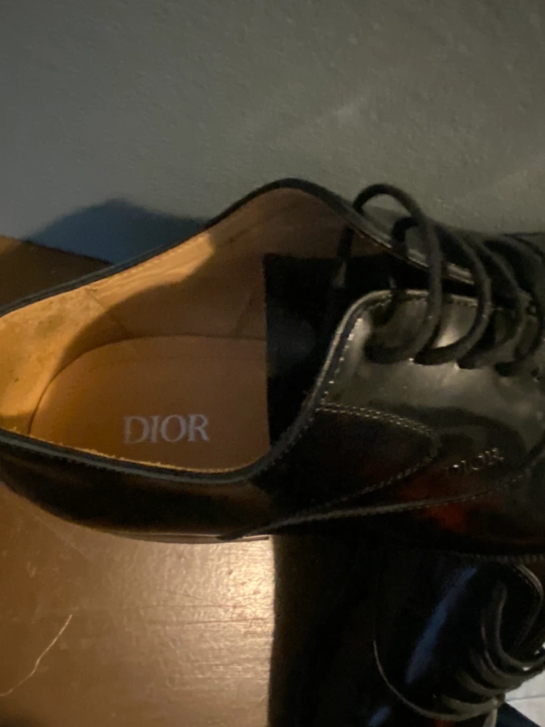 These are DIOR black patent leather Oxford dress shoes. They're made of shiny patent leather. These shoes are great for formal events. Size 11 Mens
