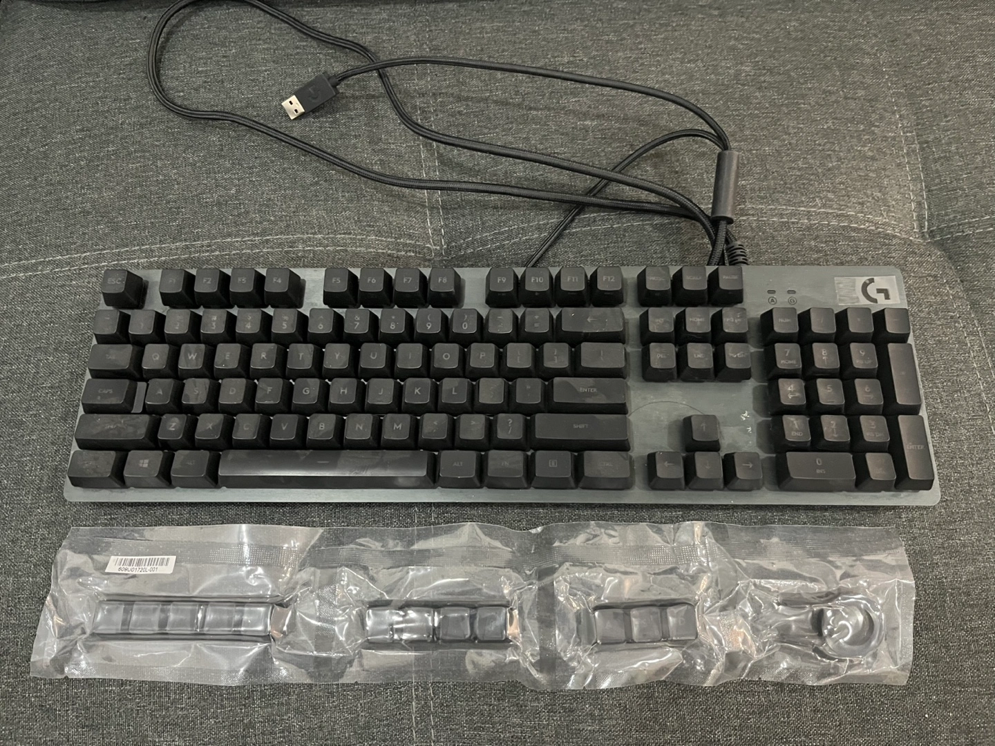 Selling a Logitech mechanical keyboard that's in good condition. It comes with a USB cable and an extra set of keycaps still in their packaging. Perfect for gaming or everyday use!