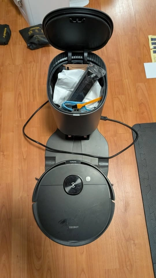 Minor cosmetic damage, but functions perfectly. It self-empties into a dust bag.