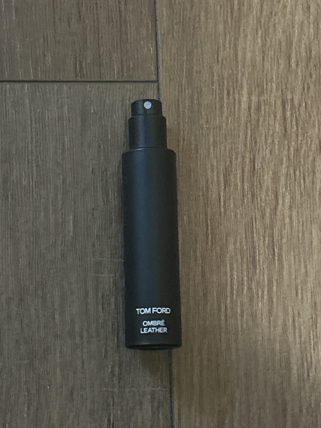 A bottle of Tom Ford Ombré Leather cologne. this is a 10 ml sample and I think I’ve used around 20 percent of it. this smells very woody, you can check out the notes in fragrantica and this lasts super long maybe around 10-12 hours