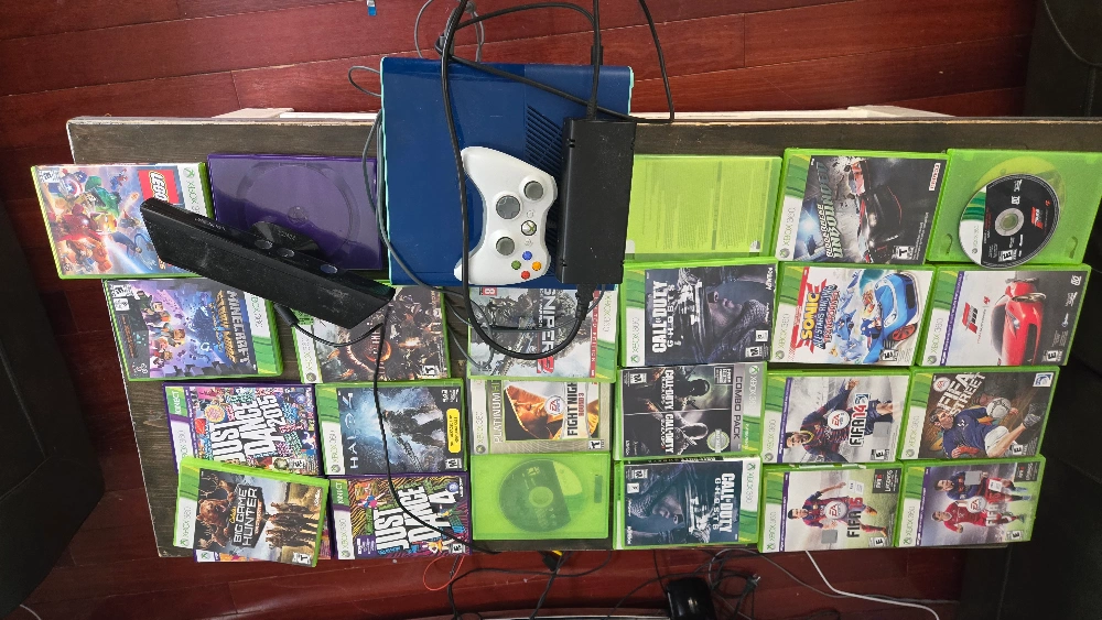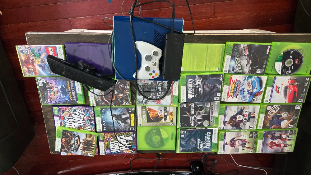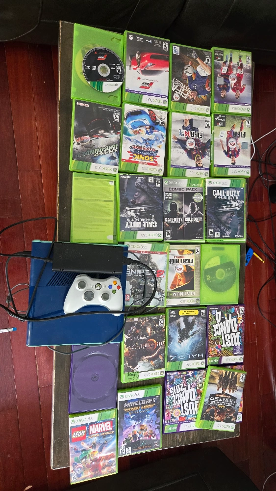 60Selling a used Xbox 360 console. It comes with a controller and a variety of games. Great for some retro gaming fun!