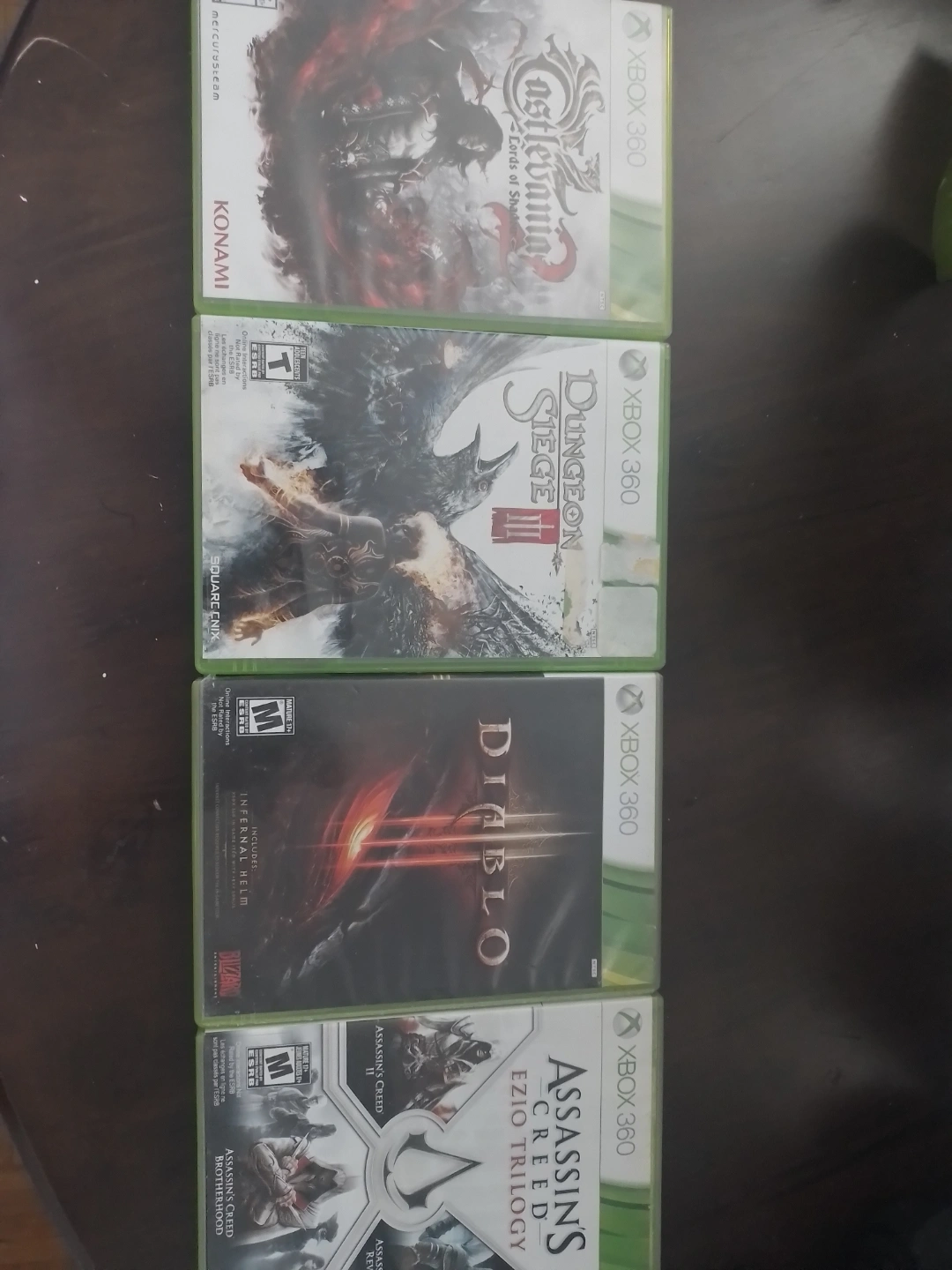 10four pre-owned Xbox 360 games. Includes Diablo III, Castlevania: Lords of Shadow, Dungeon Siege III, and Assassin's Creed Ezio Collection.