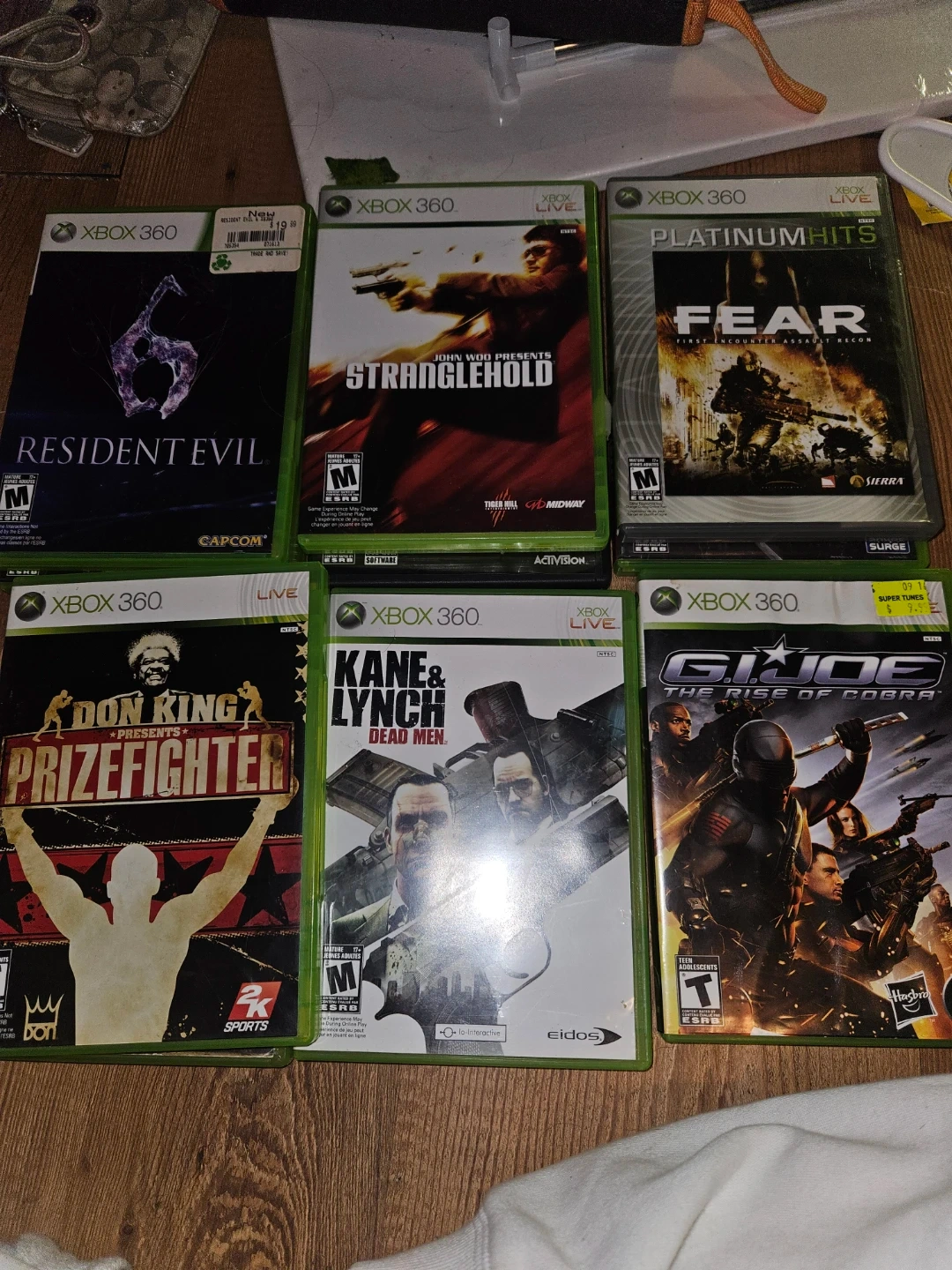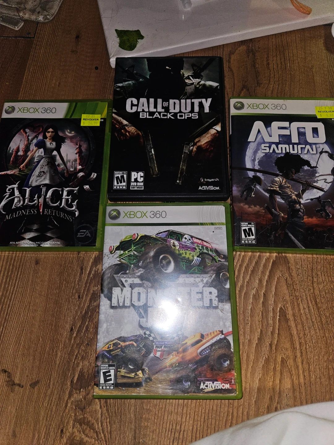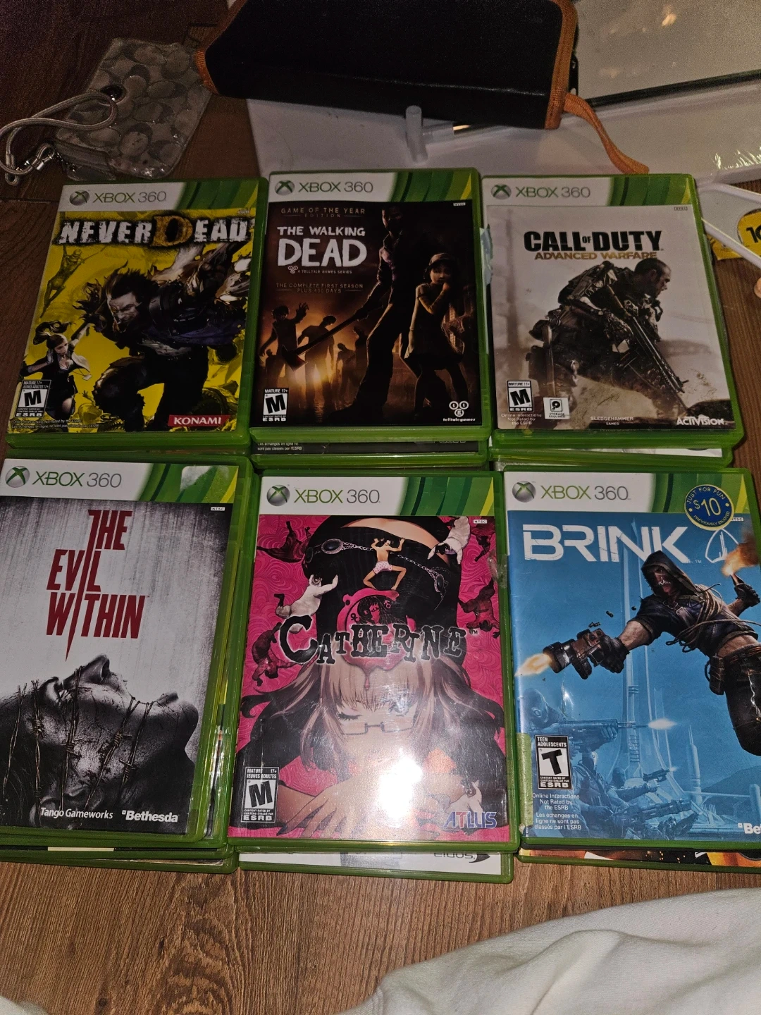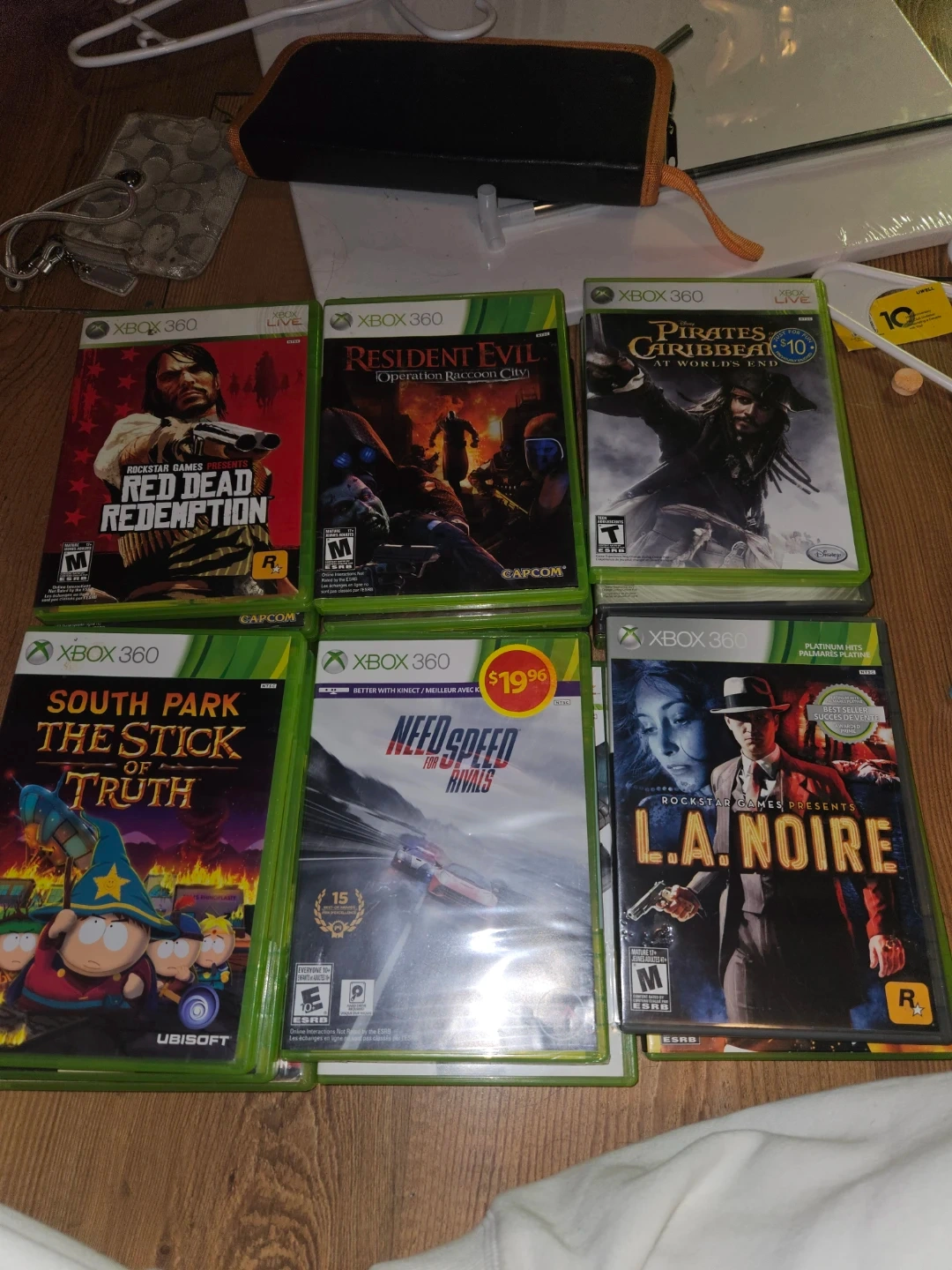 20Xbox 360 games! 10$ each or 2 for $15 Titles include Red Dead Redemption, Resident Evil, Pirates of the Caribbean, South Park: The Stick of Truth, Need for Speed Rivals, L.A. Noire, NeverDead, The Walking Dead, Call of Duty Advanced Warfare, The Evil Within, Catherine, Brink, Resident Evil 6, Stranglehold, F.E.A.R., Don King Prizefighter, Kane & Lynch Dead Men, G.I. Joe: The Rise of Cobra, Alice Madness Returns, Call of Duty Black Ops, Afro Samurai, and Monster Jam
