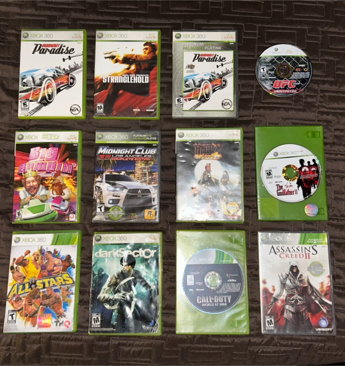 71Selling a collection of Xbox 360 games! Includes titles like Burnout Paradise, Assassin's Creed II, Midnight Club Los Angeles, and more! All games are in good condition and ready to play on your Xbox 360 console call/txt 6478242181