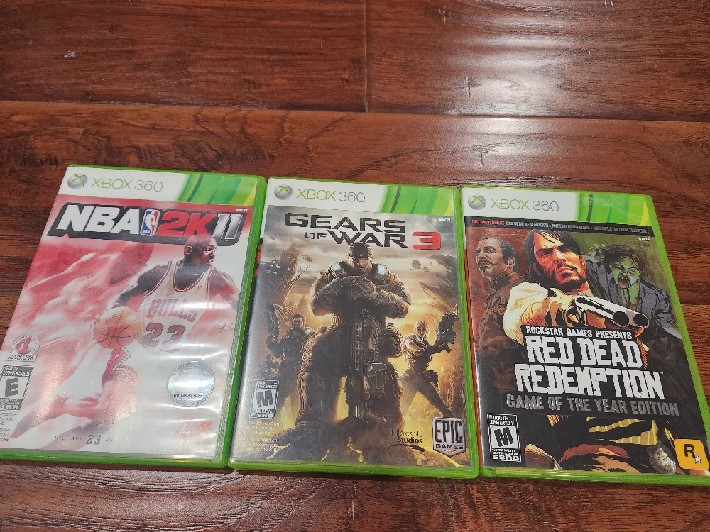 31Selling a few Xbox 360 games! Available are: - Red Dead Redemption: Game of the Year Edition (2 disc set) - NBA 2K11 - Gears of War 3 $5 Each All in good condition and ready for a new home