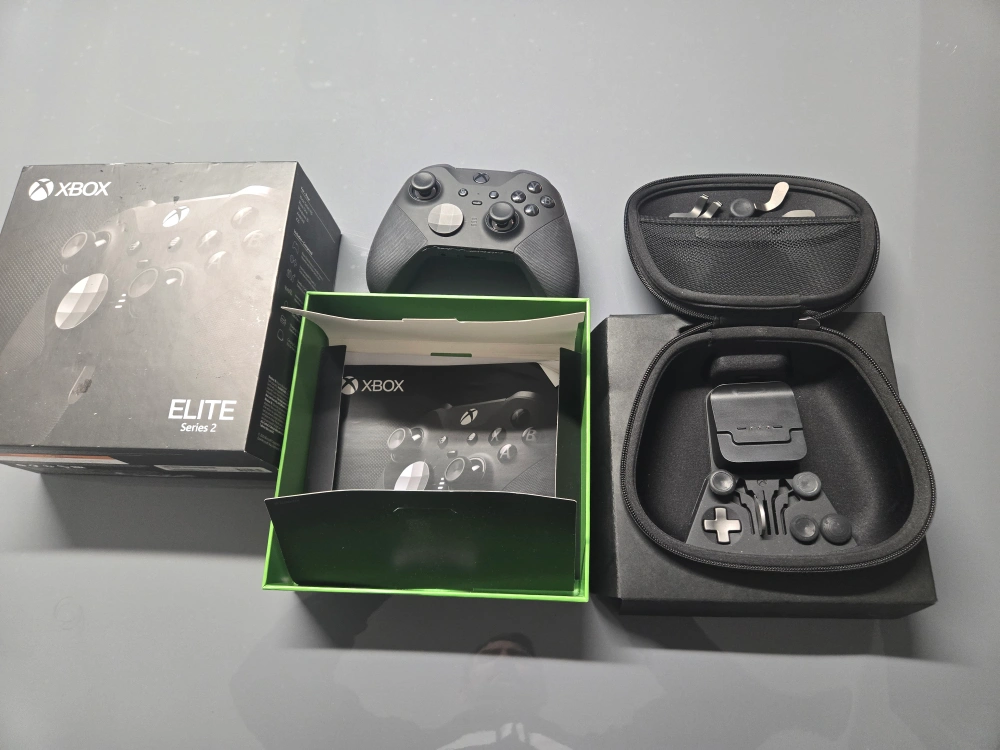Xbox Elite Series 2 controller. Includes carrying case, extra thumbsticks and paddles. selling for parts right bumper skips