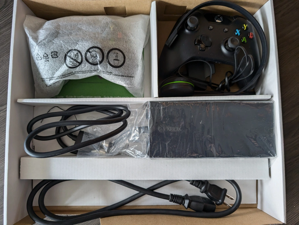 READ UNTIL THE END Xbox One 500 GB console DOES NOT WORK. It turns on but is not recognized by my monitor or TV. It could be an easy fix, maybe not. I don't have the time to tinker with it anymore 😢. Comes with 2 WORKING controllers, one being practically brand new. Also comes with Destiny, Destiny 2 and Watchdogs. So basically what you're buying are 2 controllers and 3 games, with a bonus not working Xbox One. Comes in it's original packaging.