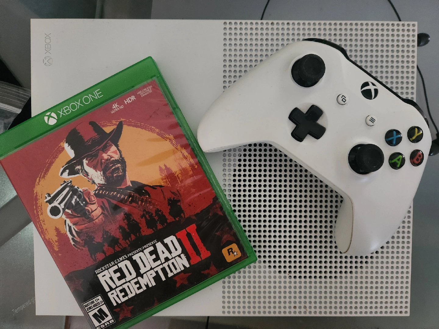Selling an Xbox One S 1TB console. It comes with a controller and the game Red Dead Redemption II. The box is also included! halo wars 2 included