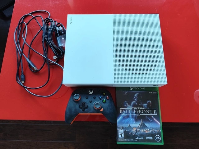 10Rarely played like new Xbox One S 1TB, comes with controller and all cables, all in perfect condition. Many games: - Star Wars Battlefront II - Resident Evil: Revelations 2 - Call of Duty: Warzone - Call of Duty: The Hunting - Rocket League - Asphalt Legends Unite - Hitman 3 - The Sims 4 - Fall Guys - Roblox - Trackmania - World of Tanks - world of warships - War Thunder - Fortnite - APEX