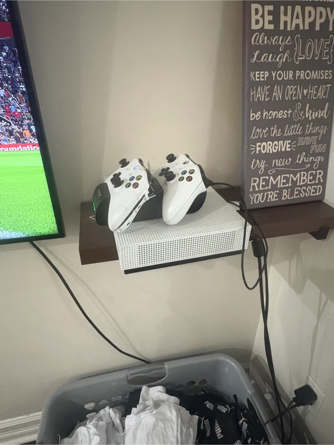23Selling an Xbox One S console. It comes with one controllers. Ready for some gaming fun! You will need to buy your own batteries for the controllers and I know the picture shows 2 controllers but only one works.Comes with games like fifa 23 Minecraft and Lego marvel Fortnite and Roblox is already downloaded to.