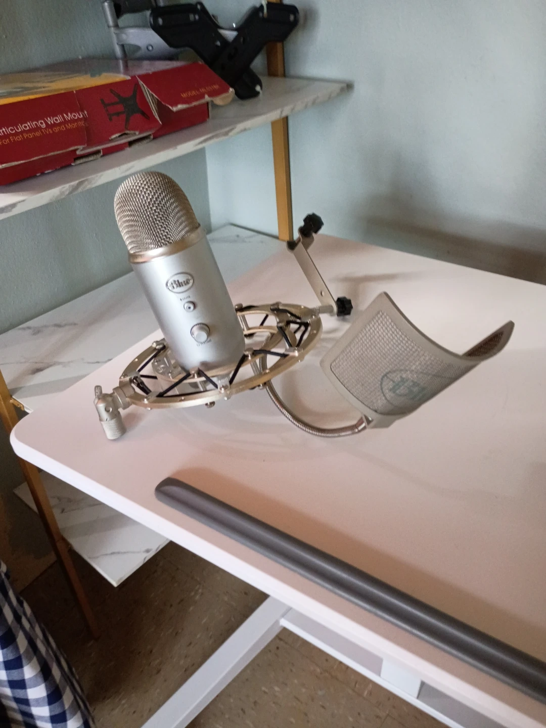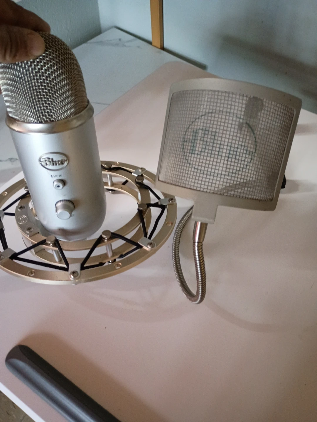Selling a Blue Yeti USB microphone in silver. It's in great condition and comes with the pop filter and shock mount. Perfect for podcasting, streaming, or recording music!