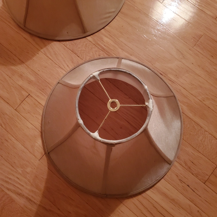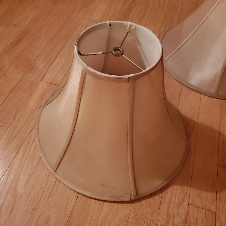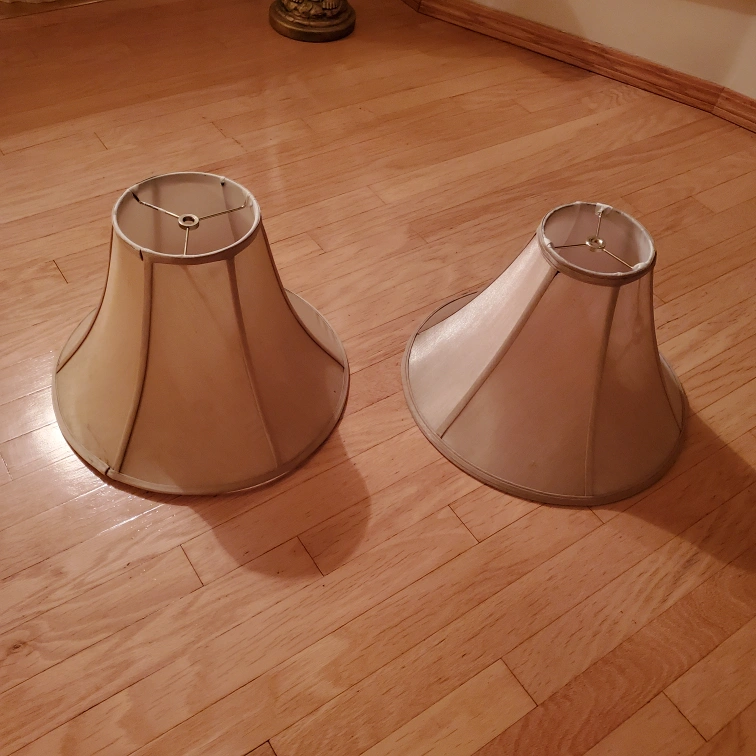 Selling two gently used lamp shades. They're a beige colour and in good condition. Perfect for adding a warm touch to any room! 5 each, measure approx. 15 inches across and 9.5 high