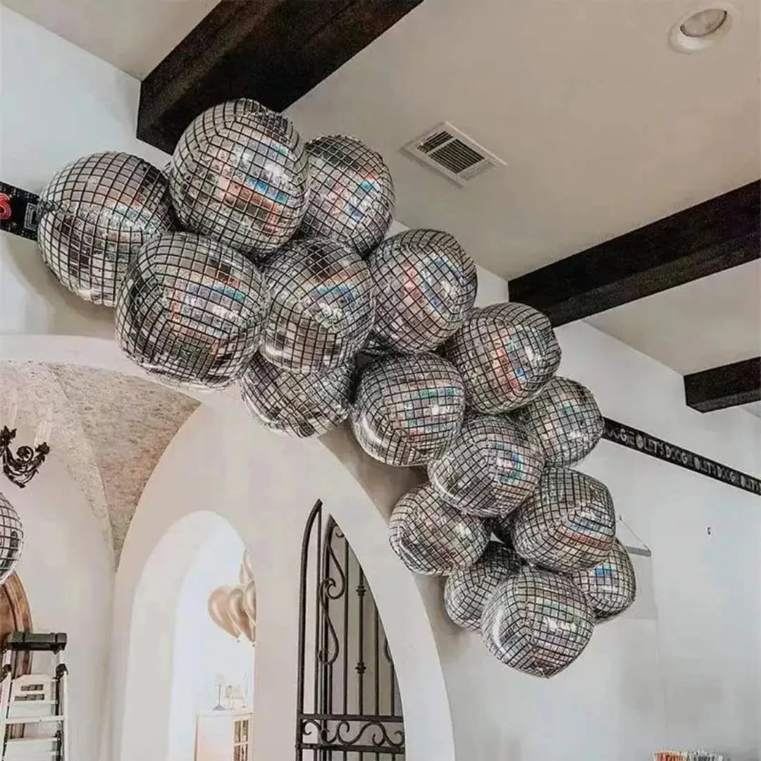 Each set includes 15 balloons, 22-inch size, in a 4D sphere shape, giving a shiny disco look—perfect for New Year’s Eve parties, birthdays, weddings, and photo backdrops ✨