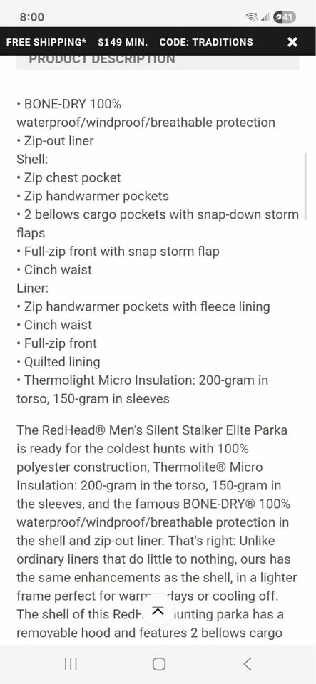 Realtree Men’s Silent Stalker Elite Dual layer Parka