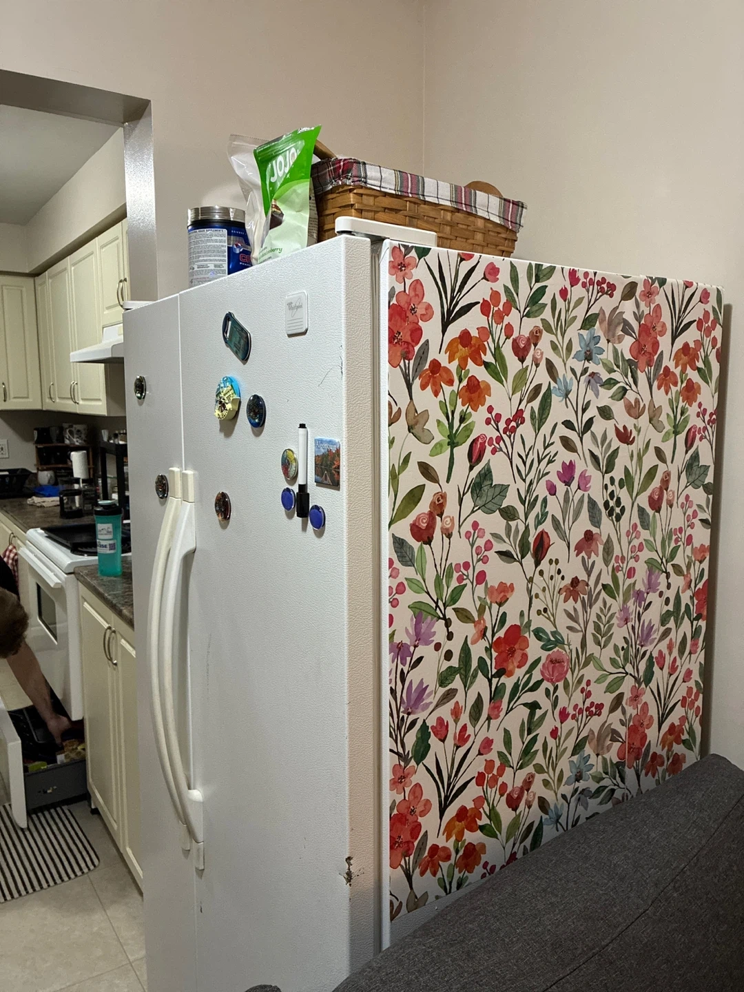 One side has a removable floral wallpaper (can remove before pickup if you prefer)