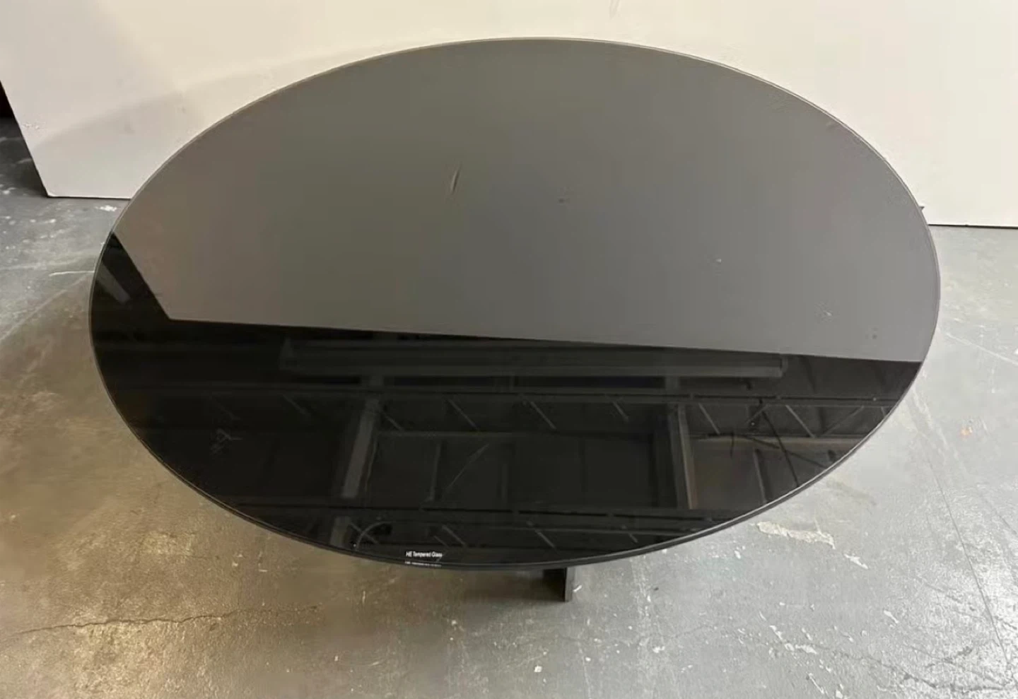 Round Black Glass Coffee Table with Metal Base