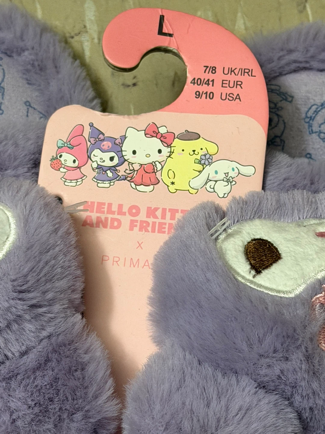 Primark Hello Kitty and Friends Purple Fuzzy Slippers Size L