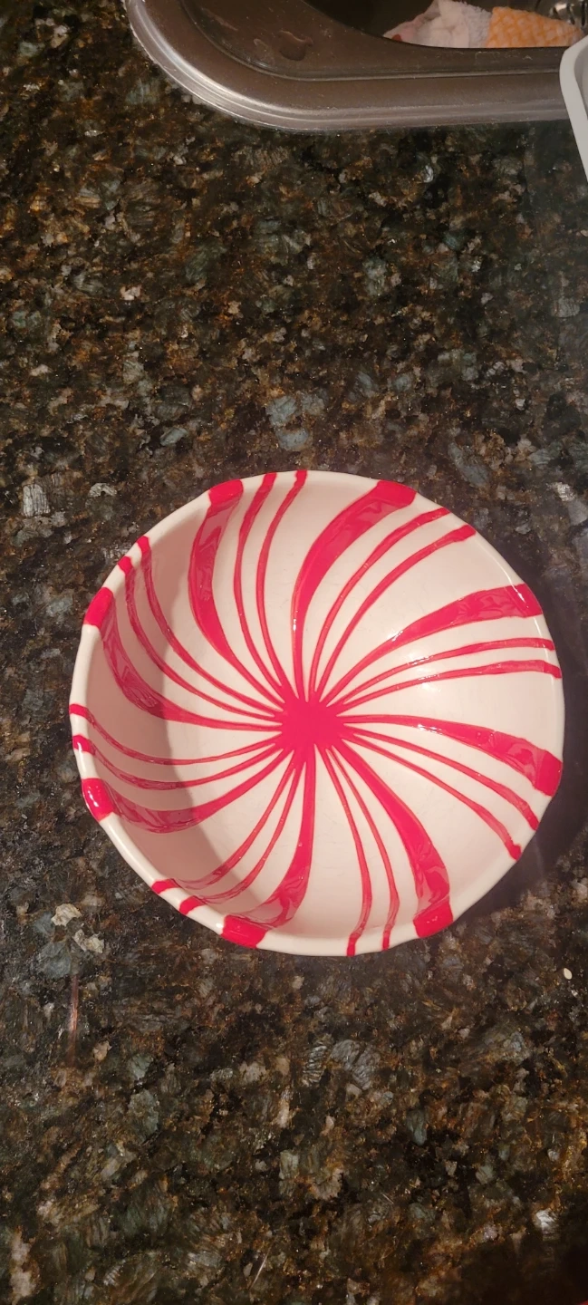This Hallmark bowl features a festive peppermint swirl design. It's dishwasher and microwave safe. This bowl is great for holiday treats or as a seasonal decoration!