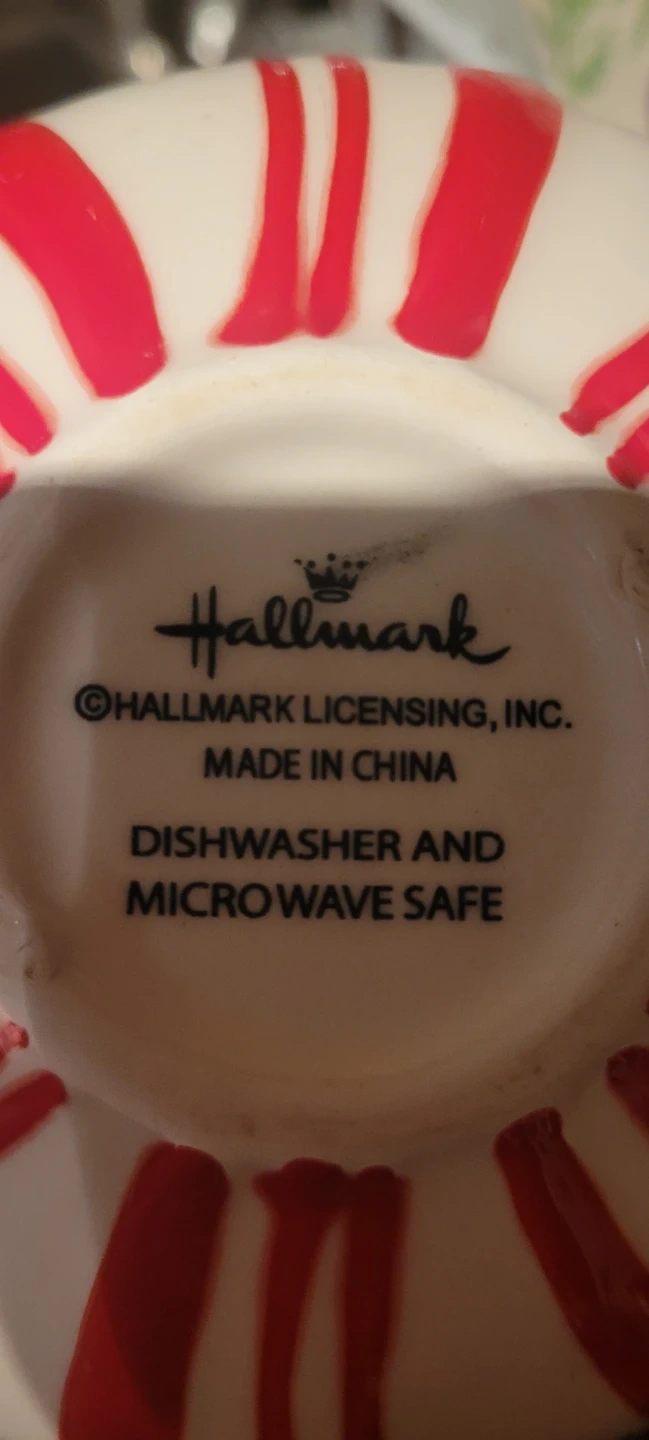This Hallmark bowl features a festive peppermint swirl design. It's dishwasher and microwave safe. This bowl is great for holiday treats or as a seasonal decoration!