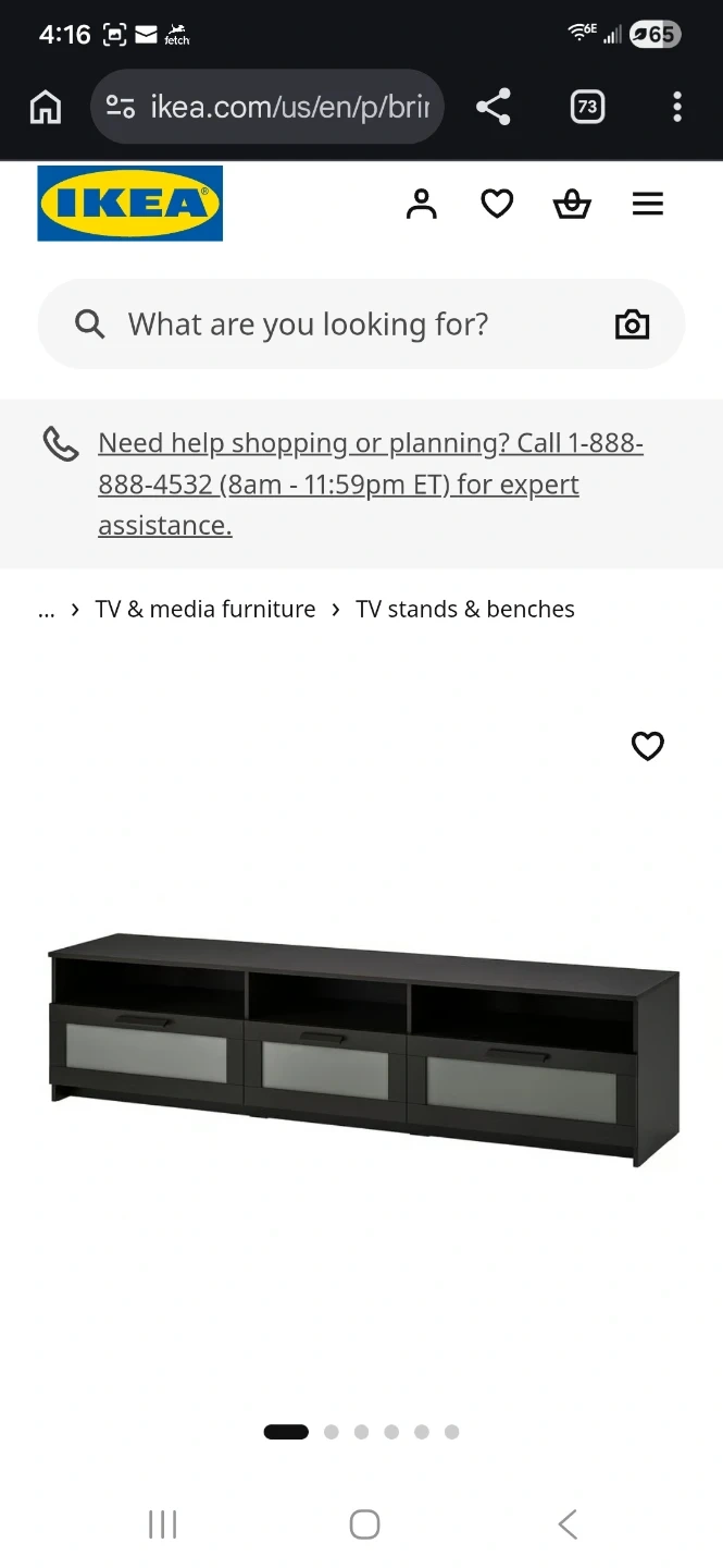 This is an IKEA TV stand in black. It's designed to hold TVs up to 85 inches. Features include multiple drawers and shelves for storage.