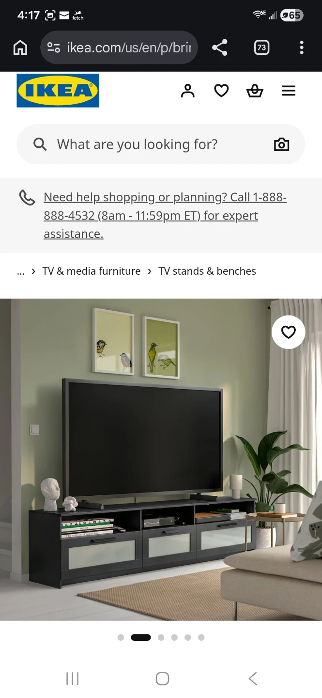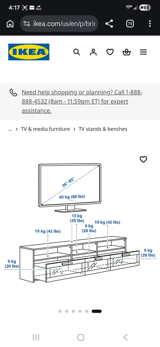 This is an IKEA TV stand in black. It's designed to hold TVs up to 85 inches. Features include multiple drawers and shelves for storage.