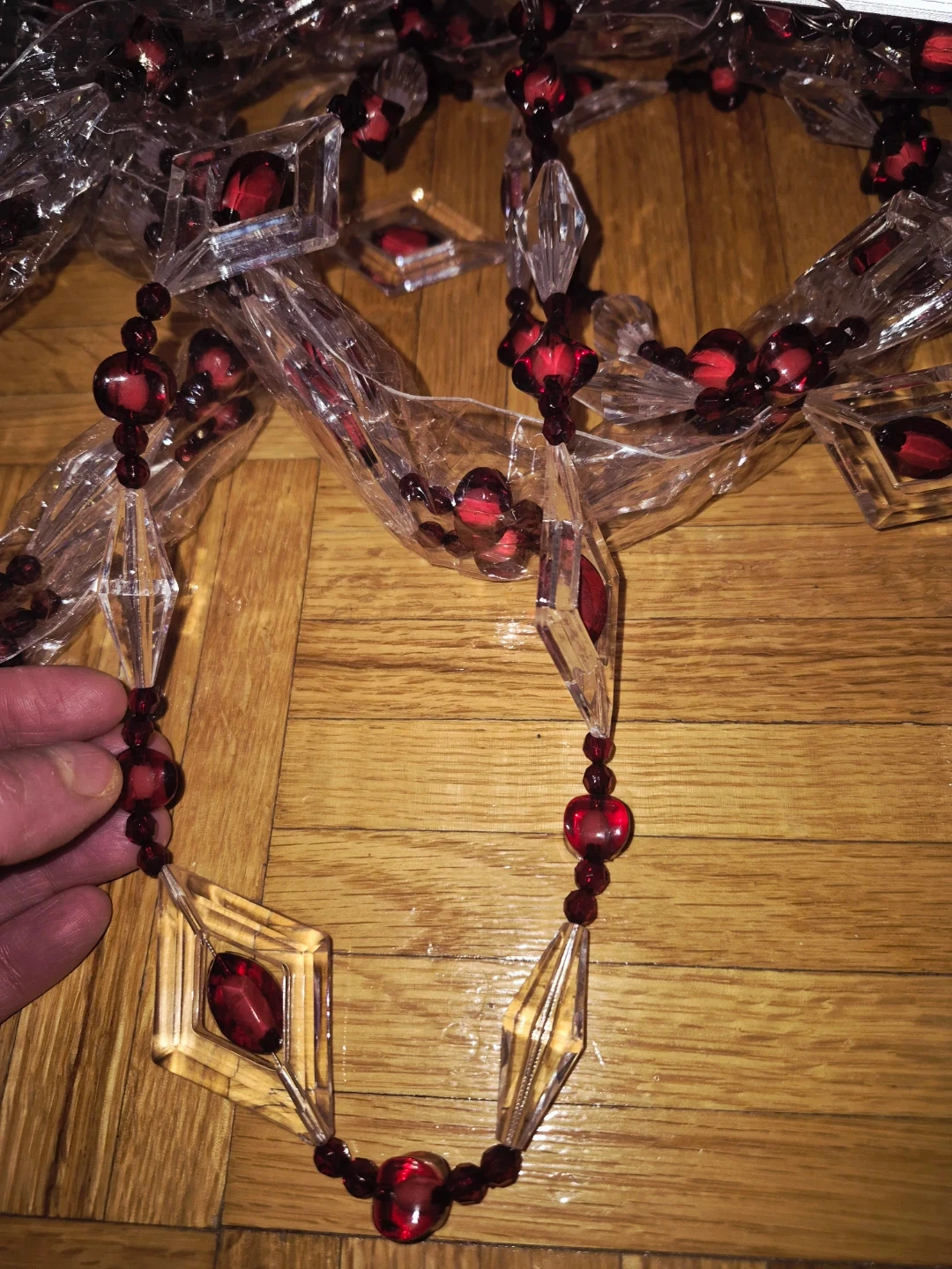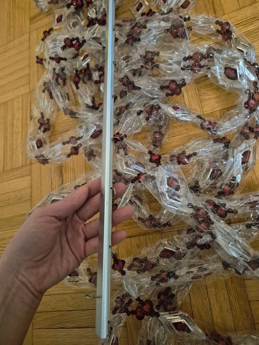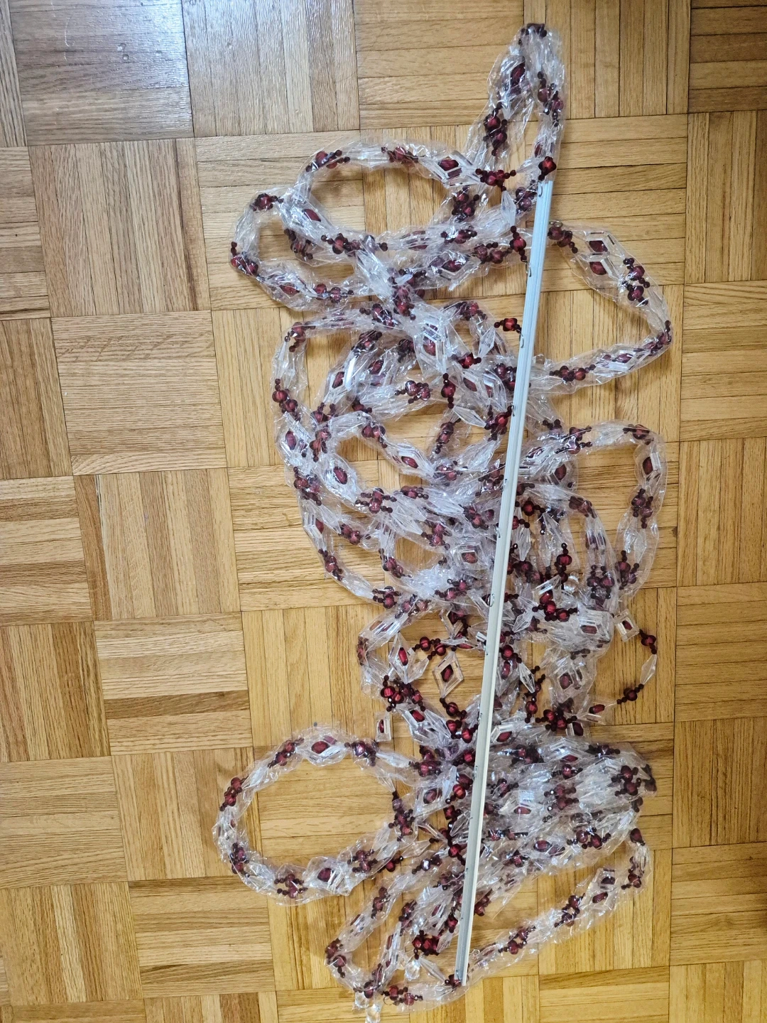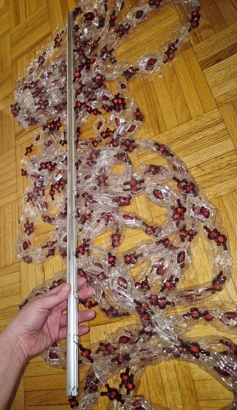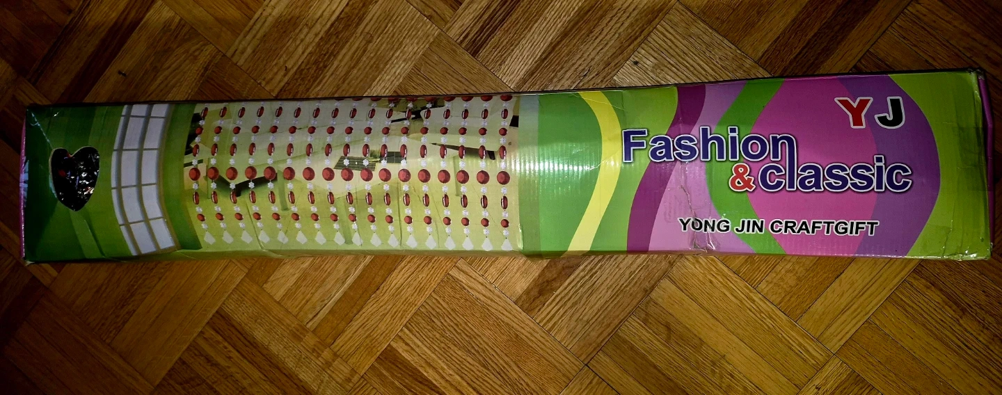 Add a touch of elegance to your space with this Yong Jin Craftgift beaded curtain! It features clear and red beads arranged in a diamond pattern. The curtain comes in its original box, ready to hang and transform any doorway or window.