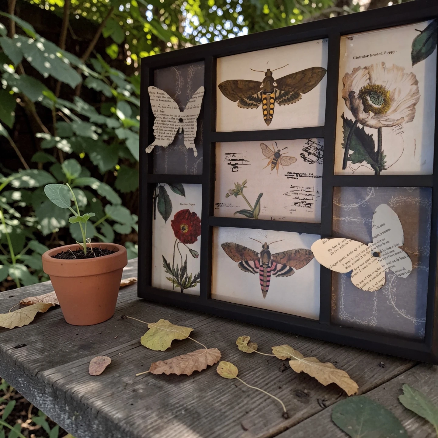 Add a touch of vintage charm to your home with this botanical collage! It features a collection of lovely prints, including moths and poppies, arranged in a stylish grid. Perfect for adding a unique and artistic flair to any room in your home. 14" x 16"