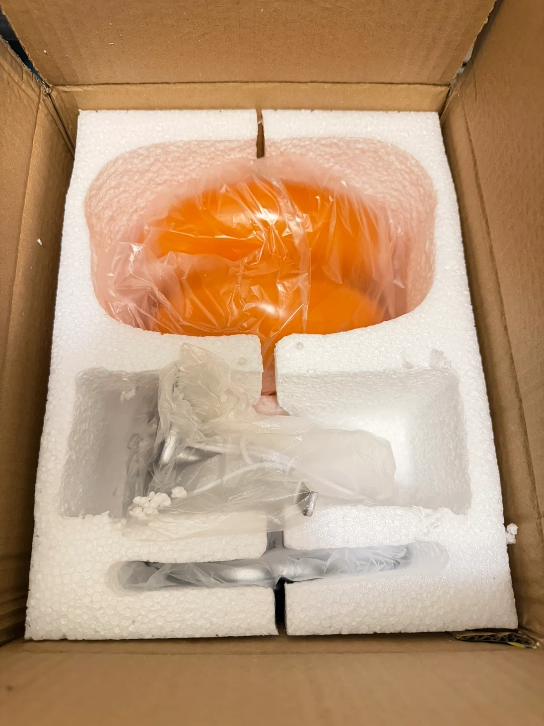 Stylish mushroom-shaped table lamp. Features a chrome base and a bright orange acrylic shade. It provides a warm, ambient glow when lit, perfect for a bedside table or accent lighting.