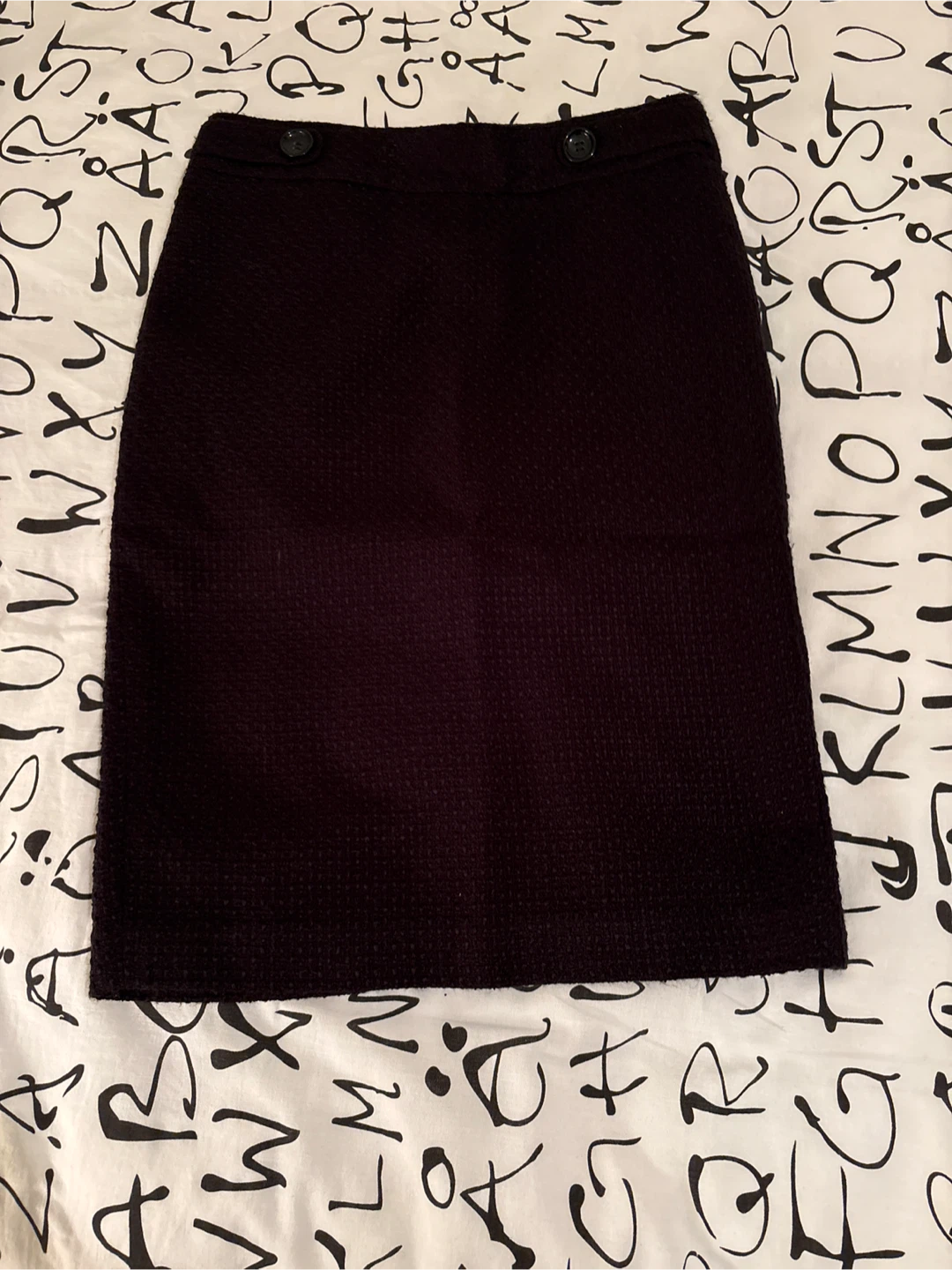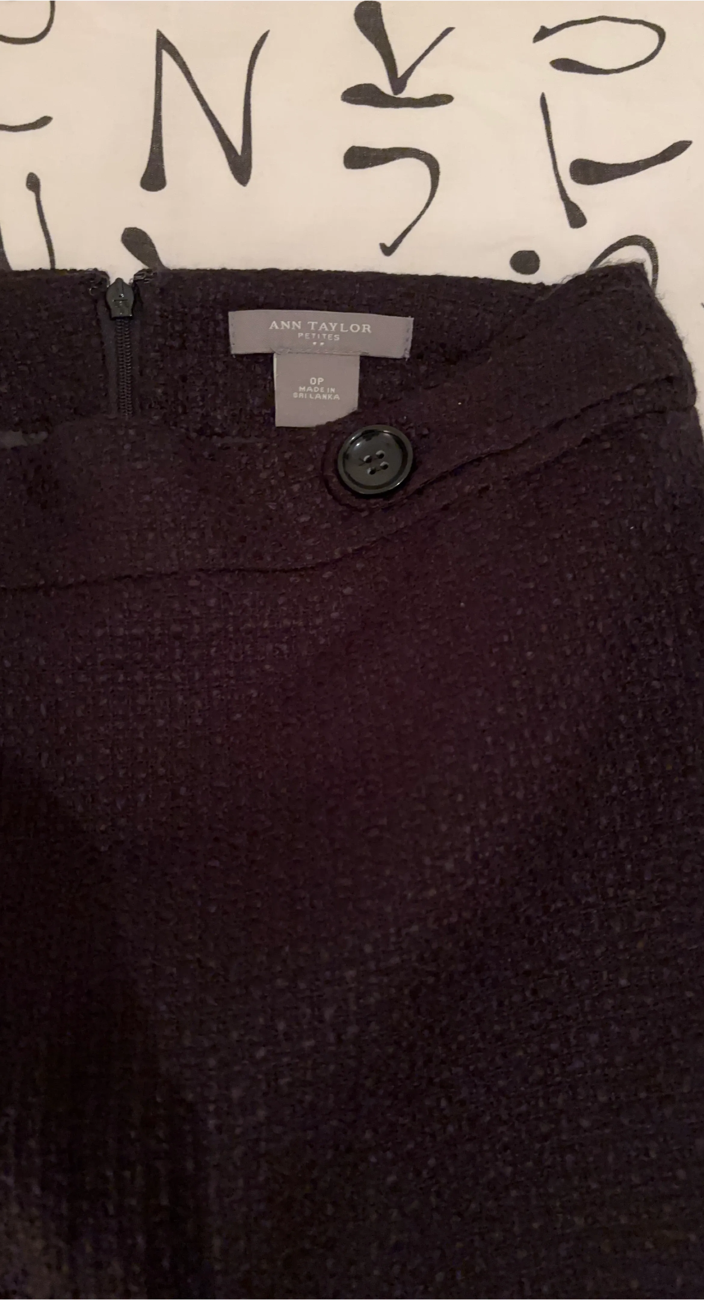 Ann Taylor Petite skirt in a textured fabric. Features a classic pencil silhouette and a button closure at the waist. Made in Vietnam. Size 00.