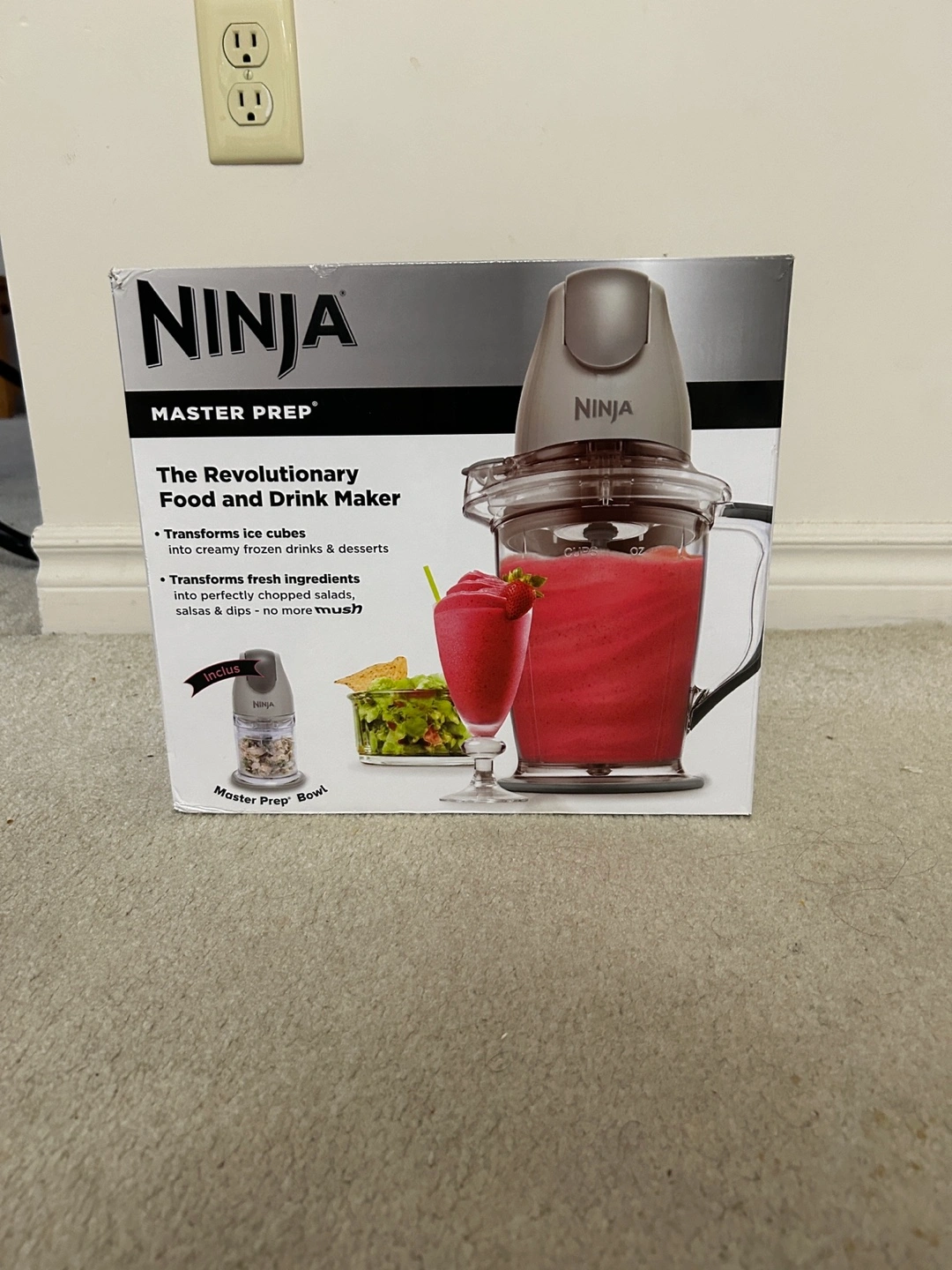 New in box. Makes frozen drinks and desserts. Transforms fresh ingredients into perfectly chopped salsas & dips. Includes Master Prep bowl.