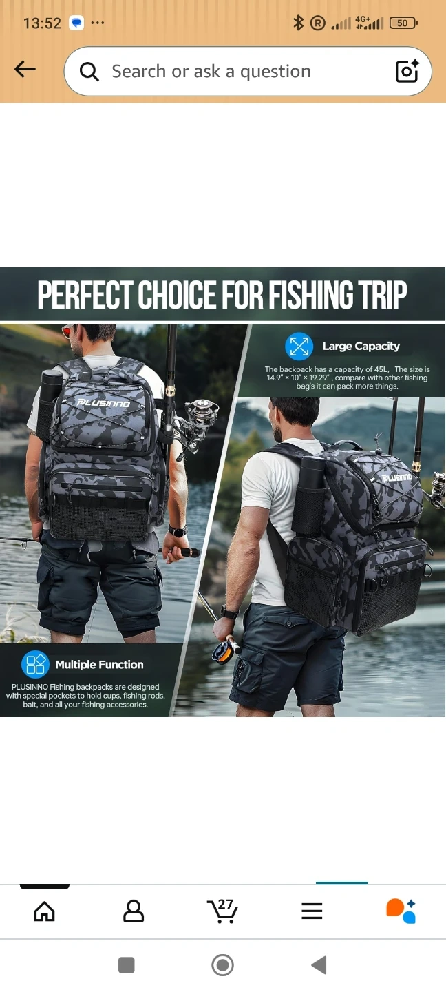 This PLUSINNO fishing backpack has a 45L capacity and includes rod holders and a cooler. It's water-resistant and designed for carrying fishing tackle and gear. Multiple compartments help organize your essentials.Brand new, never used.
