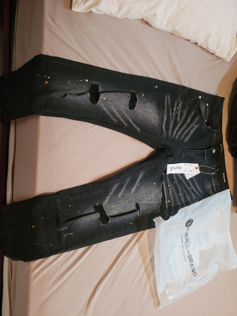 Authentic Men's Purple Brand distressed black jeans bought off the purple website for $275 plus tax . Size 36. Slim fit with slim leg. Paint splatters. New with tags.