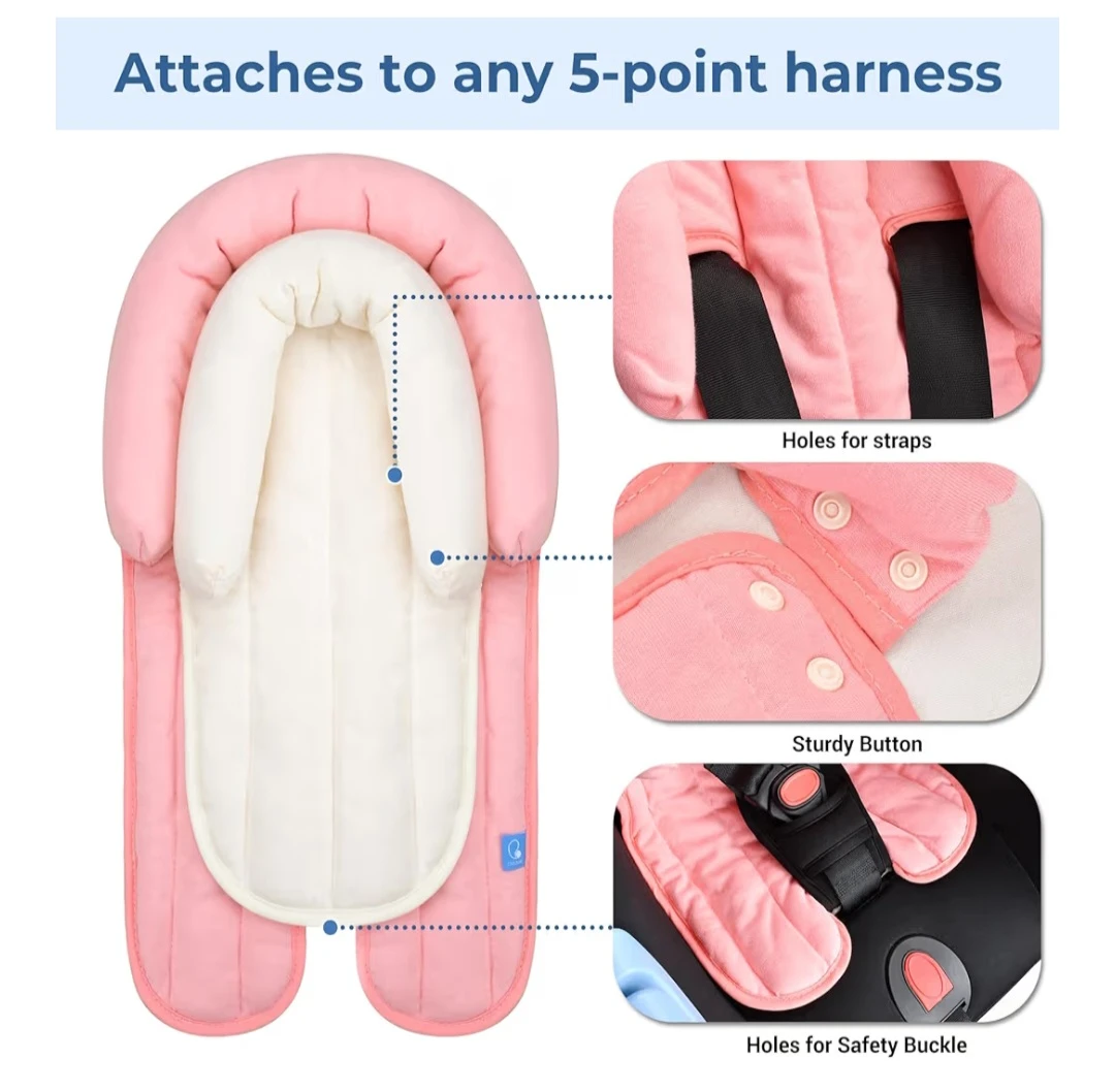 This is a COOLBEBE 2-in-1 improved support cushion for newborns. It's extra soft and breathable, perfect for infant car seats, strollers, swings, and bouncers. The insert includes head and body support.