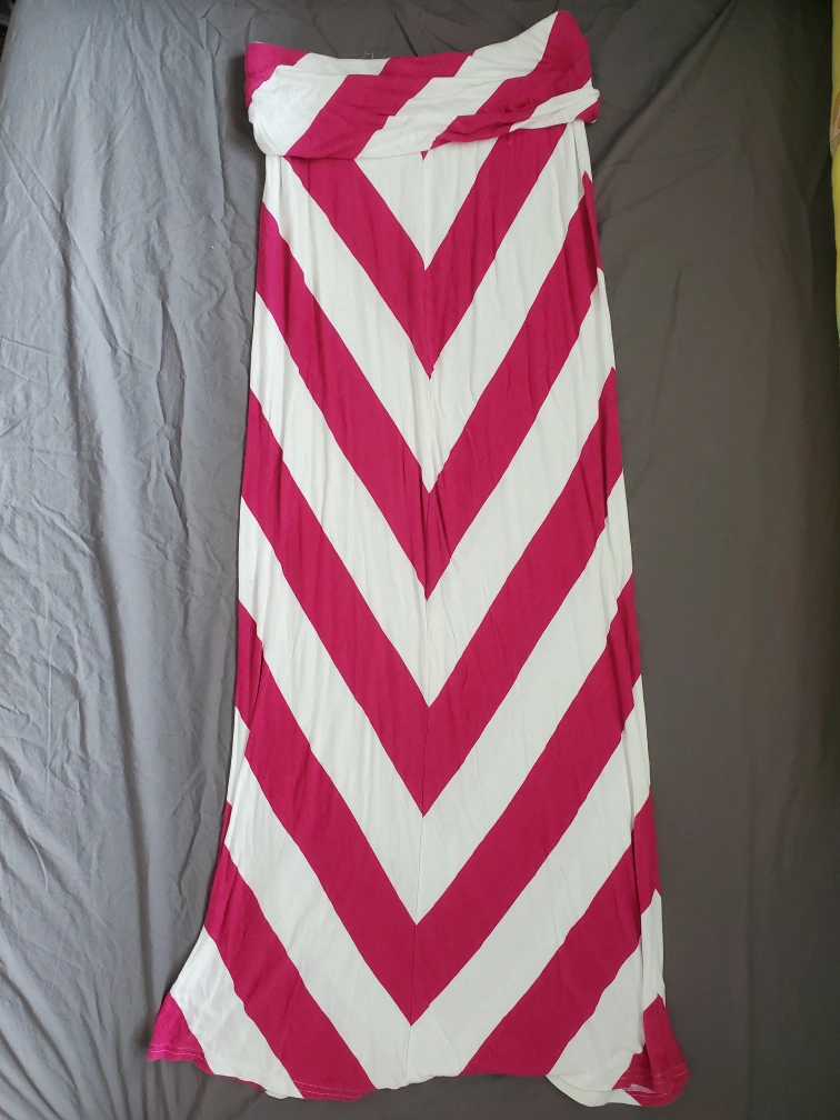 Pink and White Chevron Maxi Skirt - Extra Small
