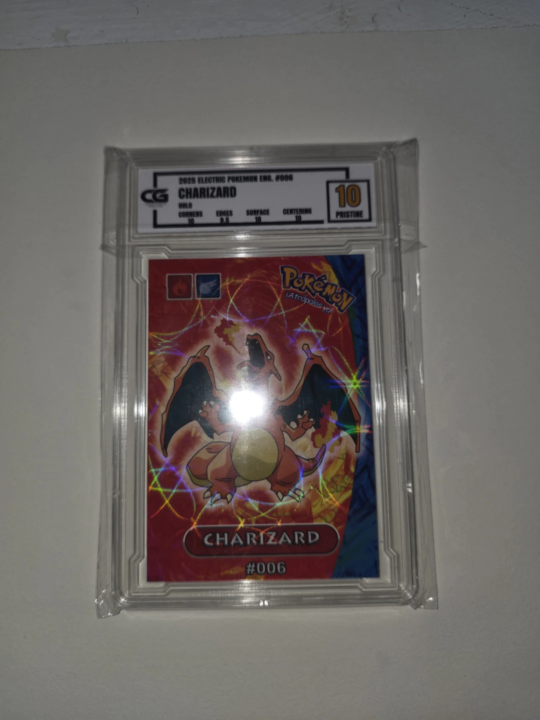 This is a graded Pokemon Charizard trading card, #006. It's a pristine 10 grade from CG GRADED. This card is perfect for any serious collector!
