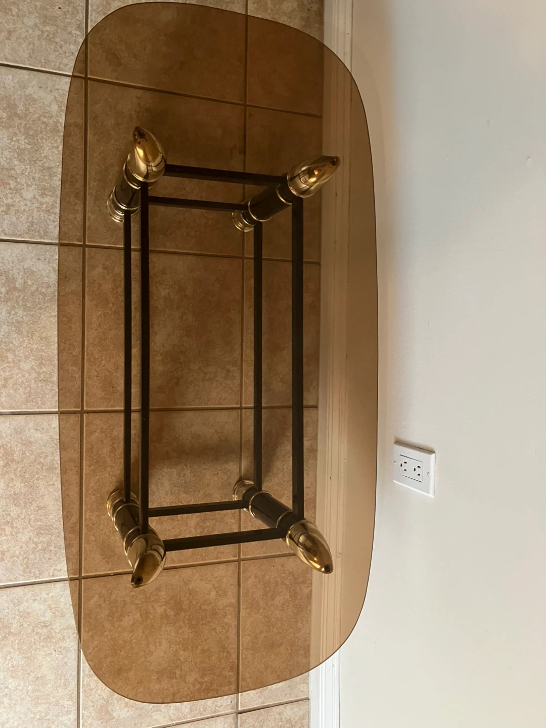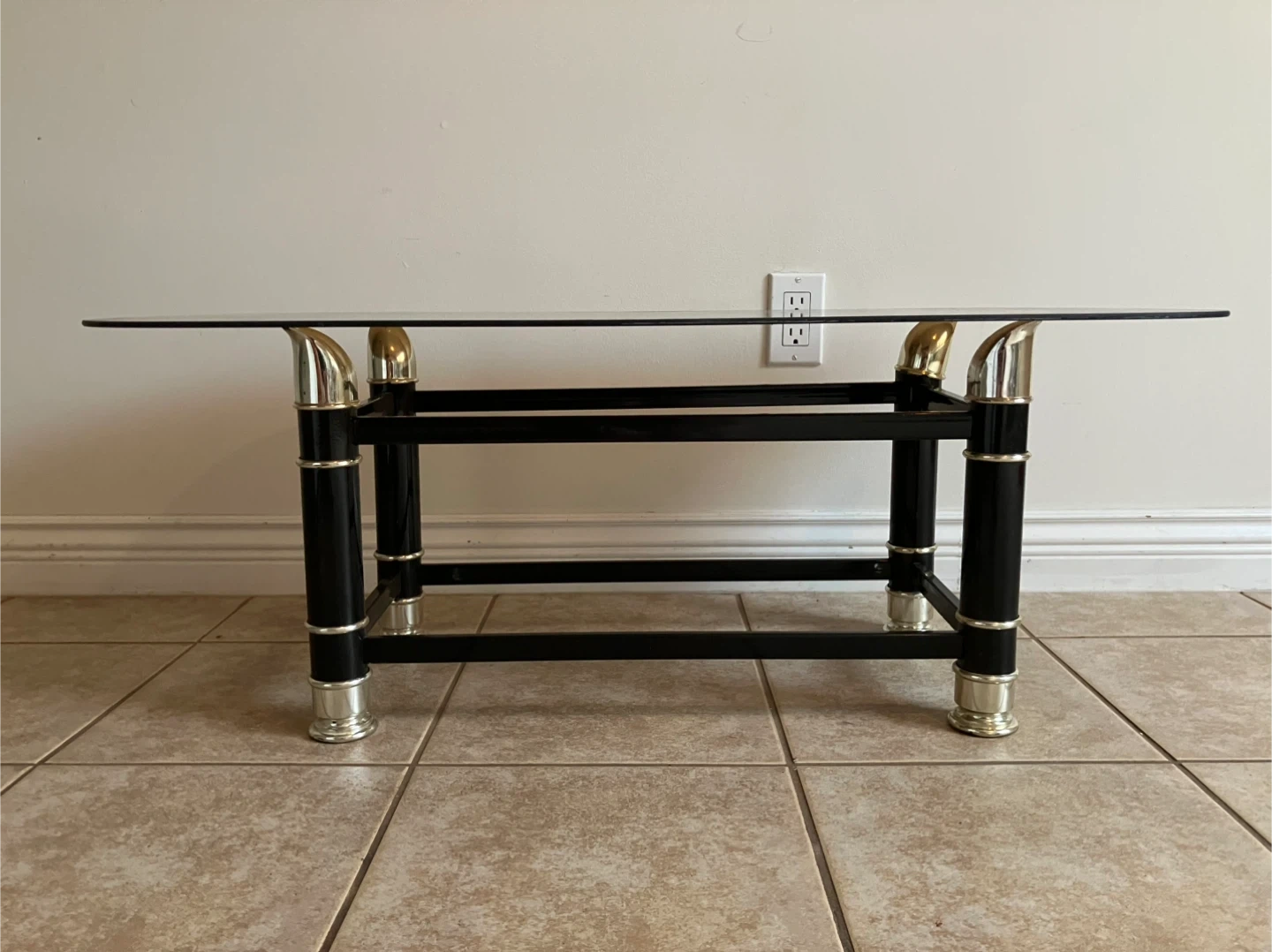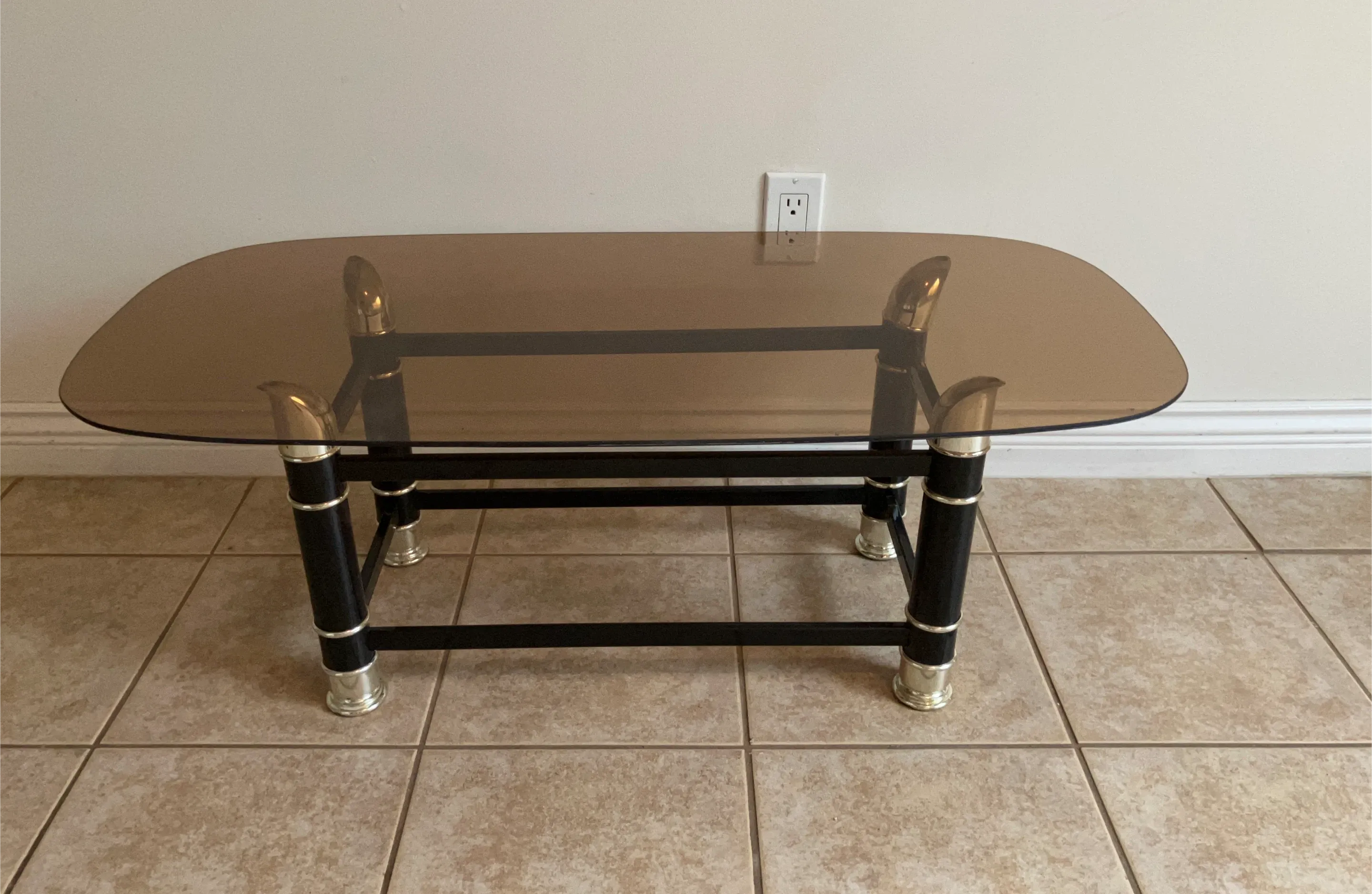 Smoked Glass Top Coffee Table with Black and Gold Accents