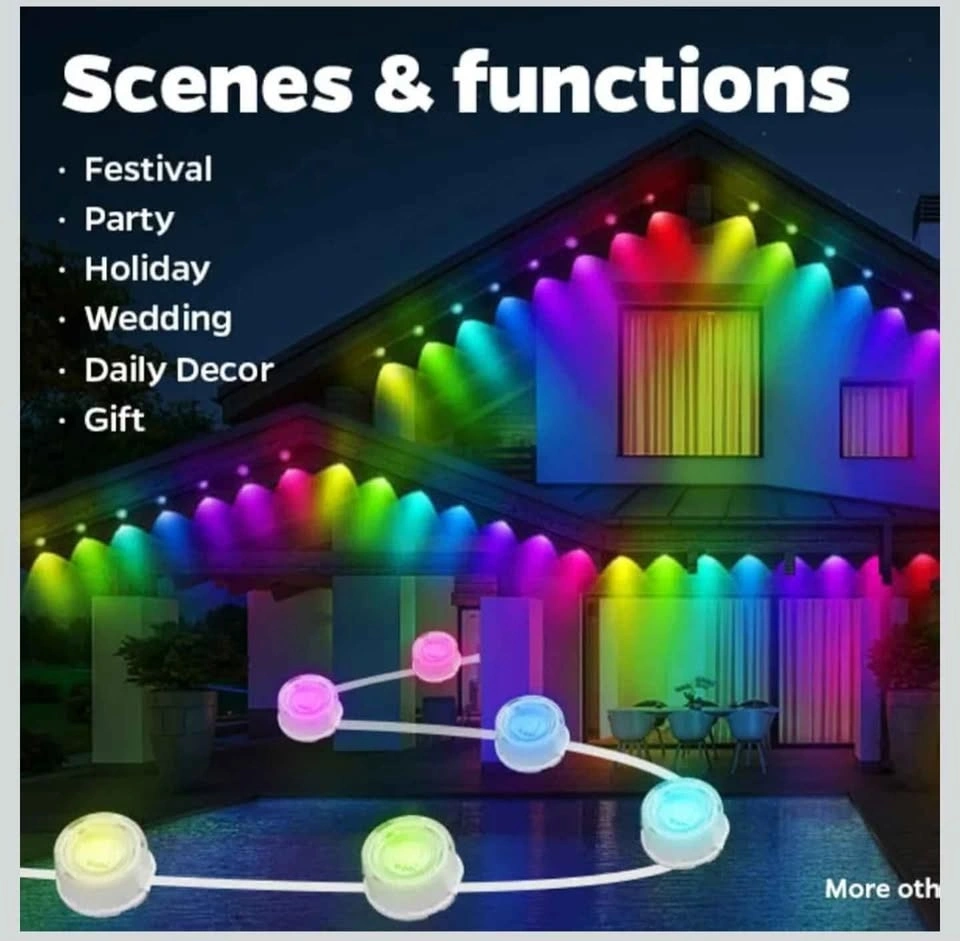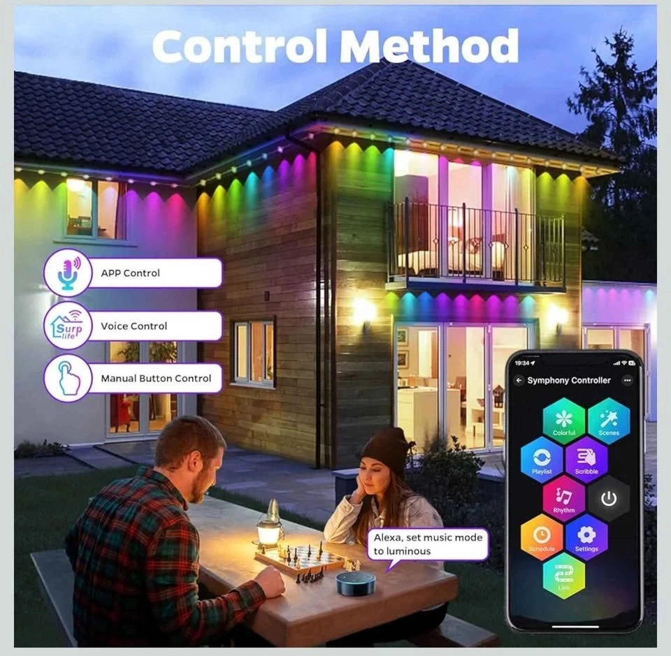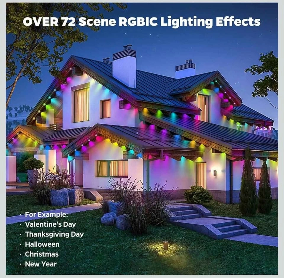 Permanent Outdoor Lights, 100ft, 72 LED Eaves Lights, Smart RGB