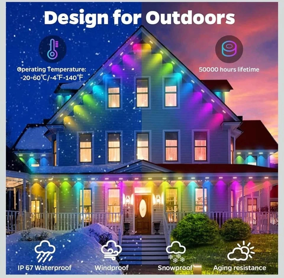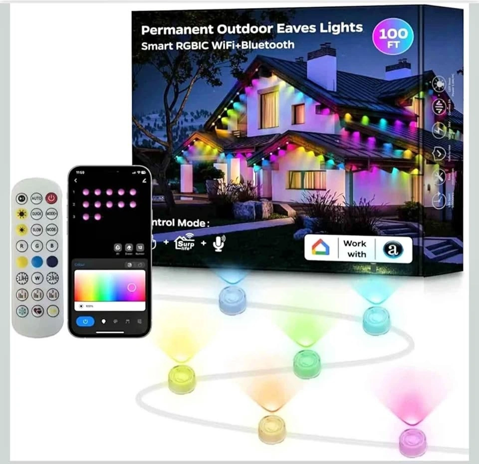 Permanent Outdoor Lights, 100ft, 72 LED Eaves Lights, Smart RGB