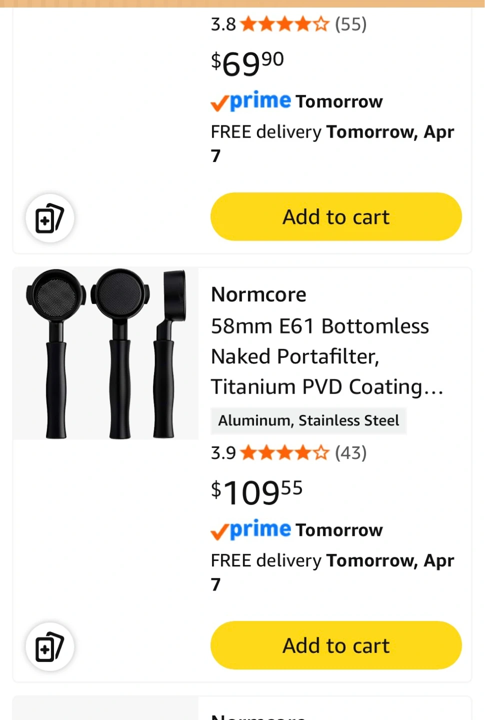 This Normcore portafilter is 58mm and features a naked, bottomless design with Titanium PVD coating. It's made from aluminum and stainless steel. It fits E61 group heads and various espresso machines like Lelit, Flair 58, ECM, Rocket, and Sanremo.