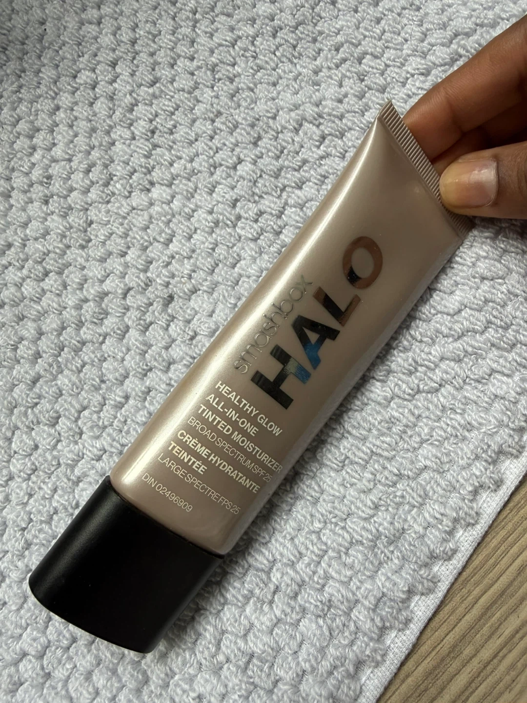 Smashbox Halo Healthy Glow All-In-One Tinted Moisturizer with SPF 25. This tinted moisturizer provides broad-spectrum sun protection. It's a lightweight formula designed to give a healthy glow.