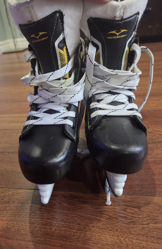 VIC HX Hockey Skates are designed to provide durability and performance for junior skaters. Built with a strong stainless-steel blade, these skates are easy to sharpen and offer long-lasting use on the ice. With a secure lace-up closure, these skates provide a snug, reliable fit, helping skaters stay balanced during play. Perfect for hockey and skating, these skates deliver a sturdy feel for confident movement on the ice. $25