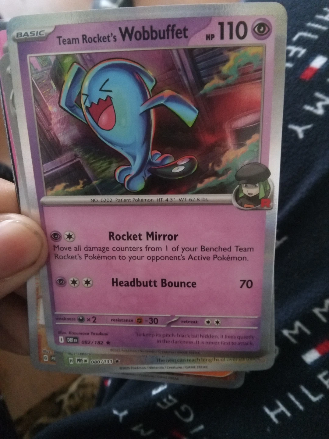1 / 11 / 1Buy & SellTeam Rocket's Wobbuffet Pokemon CardTeam Rocket's Wobbuffet Pokemon Card$3This is a Team Rocket's Wobbuffet Pokemon card, number 082/182. It features the 'Rocket Mirror' and 'Headbutt Bounce' attacks. The card has 110 HP.ConditionLike newWHERE TO MEETsubwayView MapSELLERverifiedJesseCicero Stadium942 reviews0 chats·0 favorites·5 viewsSEND CHAT TO SELLERHi Jesse! I’m interested in your listing.Hi Jesse! I’m interested in your listing.Get the Karrot app to chatSign In to chat