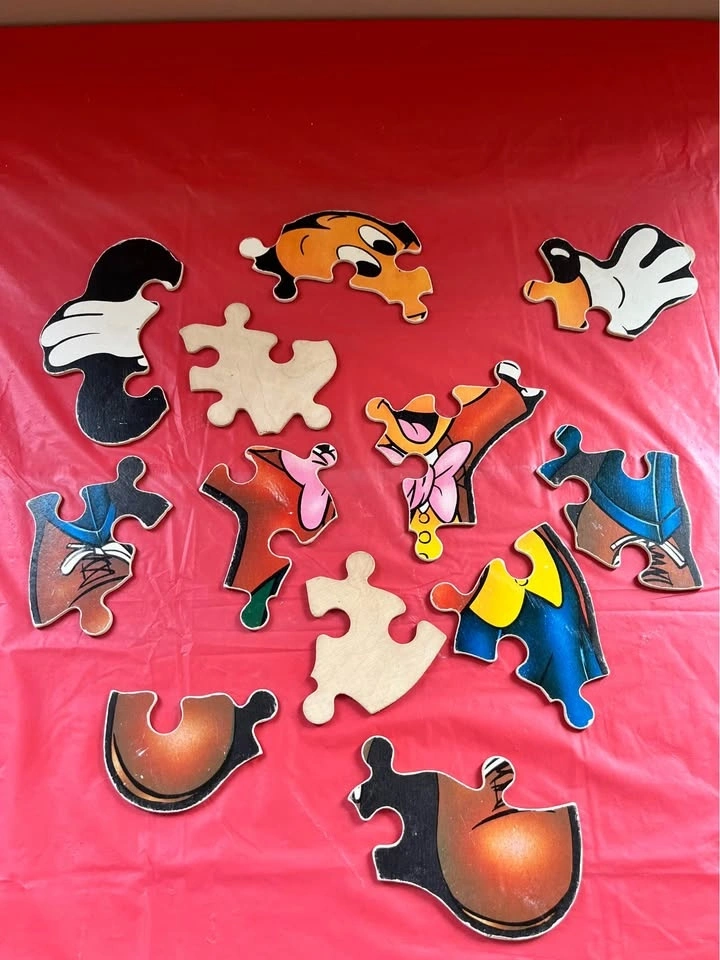 This is a vintage wooden puzzle with 12 pieces. It is quite large and fun to use as a first puzzle for young children. It is very rare. Held onto it for a long time but now it needs a new home. Pick up and cash only.